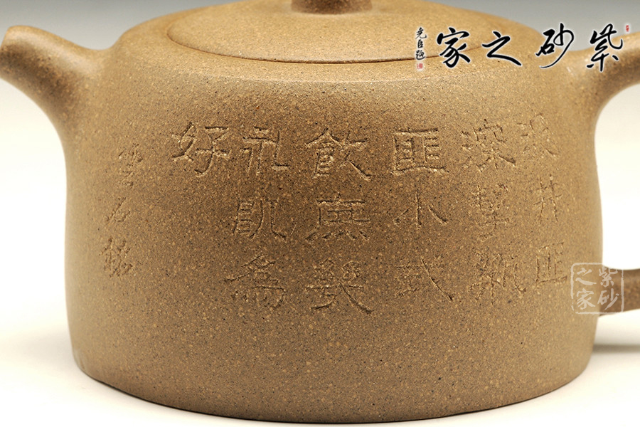 壺身通轉(zhuǎn)鐫刻的是經(jīng)典的曼生仿古井欄的銘文,銘文經(jīng)典且傳自紫砂文化的鼎盛時期,寓意非凡;老師的篆刻功力深厚,字體渾厚有力,雋秀靈動,是為佳品。