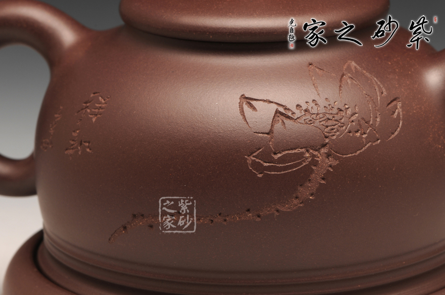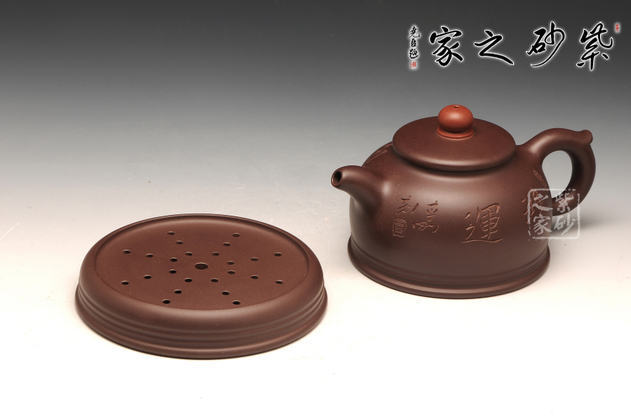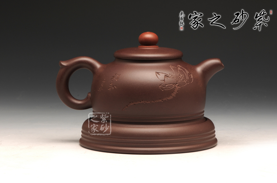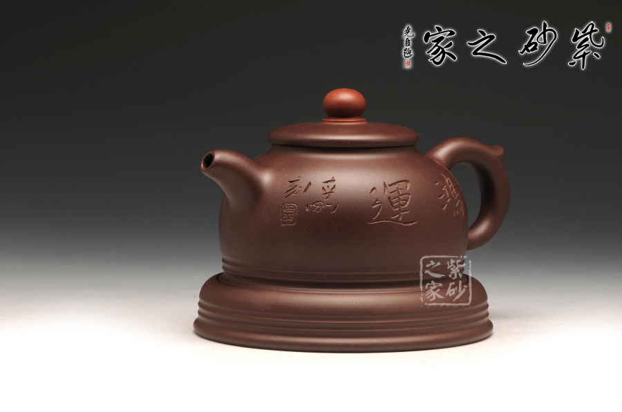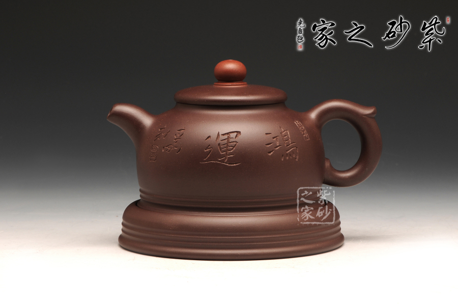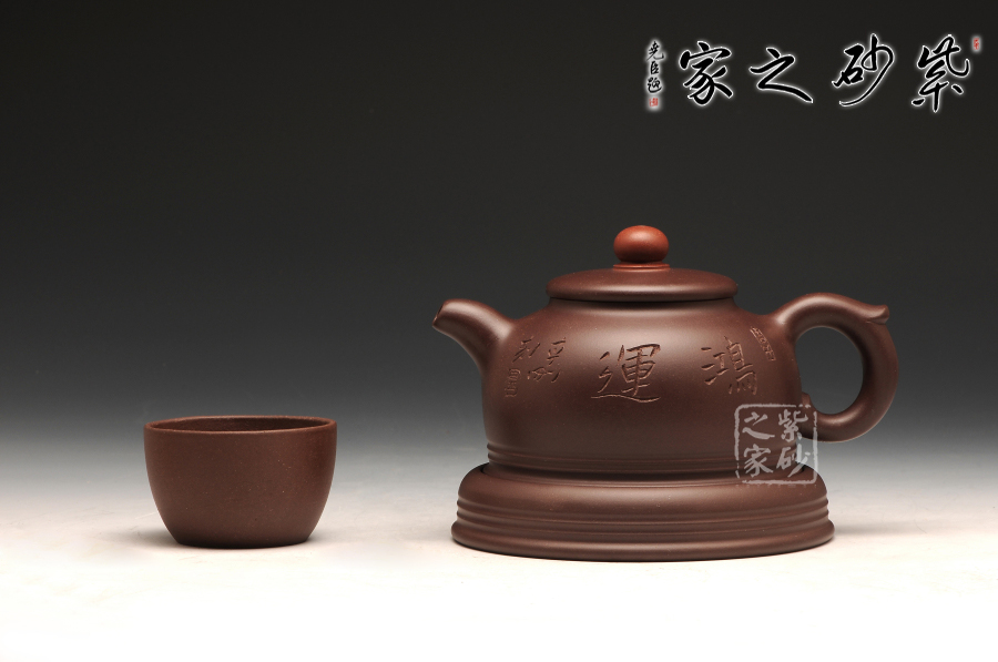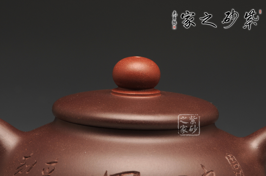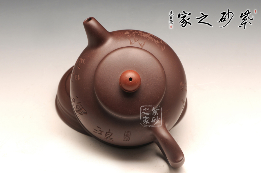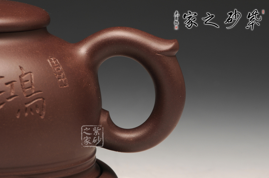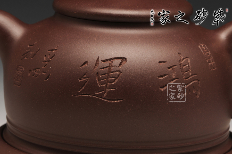 此件作品有著豐富吉祥的含義,以傳統(tǒng)壺型上進行創(chuàng)新,飛把與壺嘴相互對應,壺蓋之上突出壺紐的紅色,烘托了吉祥寓意的主題;此壺采用的是紫紅泥全手工制作而成,質感極為細膩,且富有一股厚重的神秘感;“鴻”與“紅”諧音,以此為寓意恰到好處,壺的點睛之處便是紅珠壺鈕,壺身如半月,穩(wěn)實大氣,線條柔和,殷實又不失雅致,帶著一股古樸的味道,似有鴻運當頭之祝福。此作品配有防積水底座,專有設計,是其他壺所沒有的,底座上有滲水孔,既能防止水溢到桌面而要不停清理水漬,又能防止茶水積于壺底,導致壺底形成茶垢而影響外美觀,可謂一舉兩得。