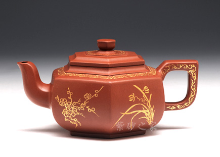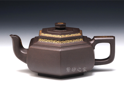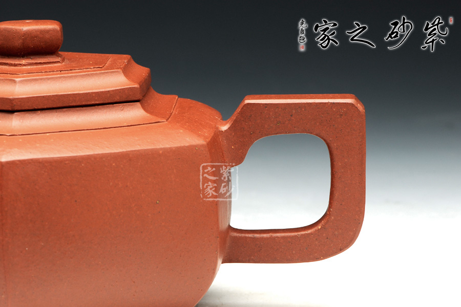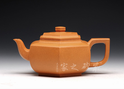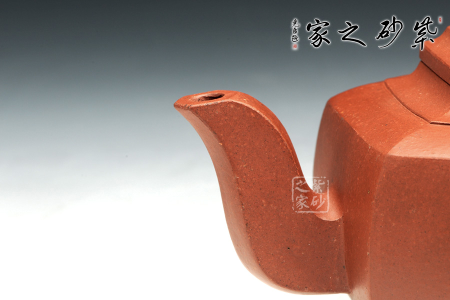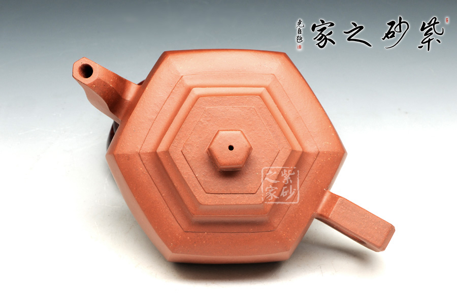 雪華壺意為瑞雪兆豐年之意,寓意美好,此款六方雪華壺在經(jīng)典雪華壺的基礎(chǔ)上略作變通,將壺身與壺底的過(guò)渡變得棱角分明,使雪華的壺身變?yōu)榇怪钡牧妫譃樯现邢氯糠?蓋面重疊六方形,六方蓋鈕與壺身相似,六方加底,整體造型,折肩以上刻劃較細(xì),俯視可看出六個(gè)方形層層疊加,壺身較為簡(jiǎn)單,可形成對(duì)比;嘴、鈕與把三點(diǎn)一線(xiàn),嘴型呈六方,又彎曲有度,三彎古拙韻高;把呈四方,轉(zhuǎn)折有力度,做工細(xì)致,方雅而不失靈氣,美麗動(dòng)人。