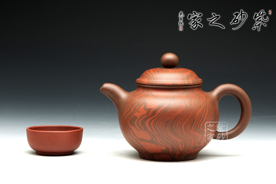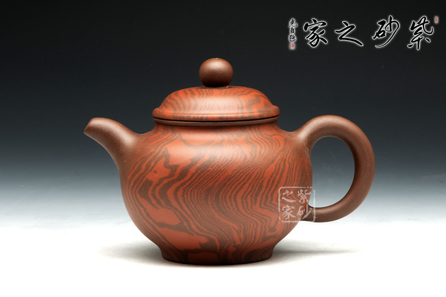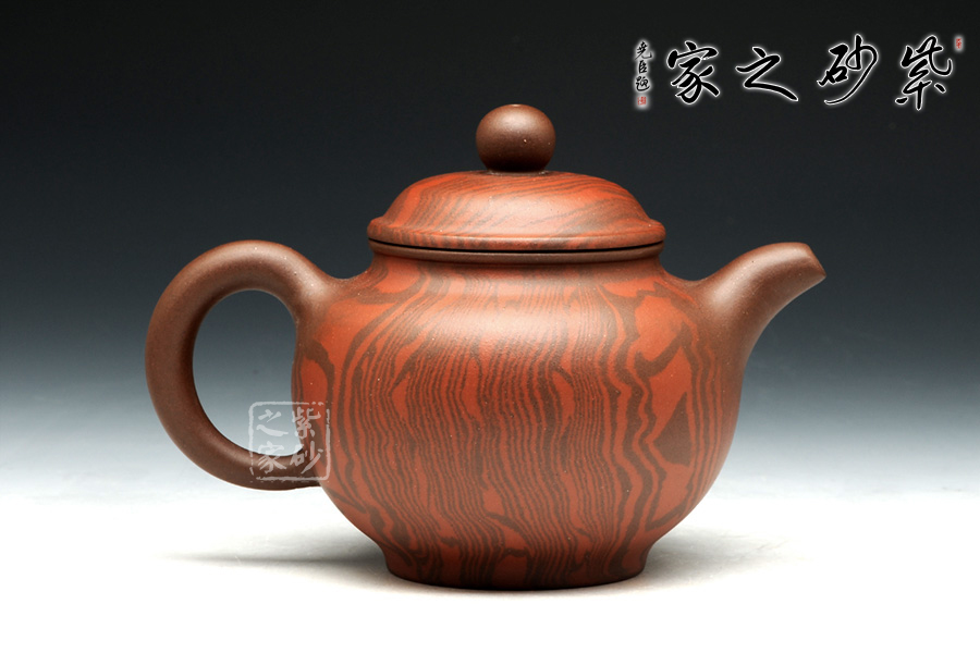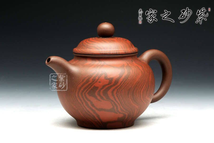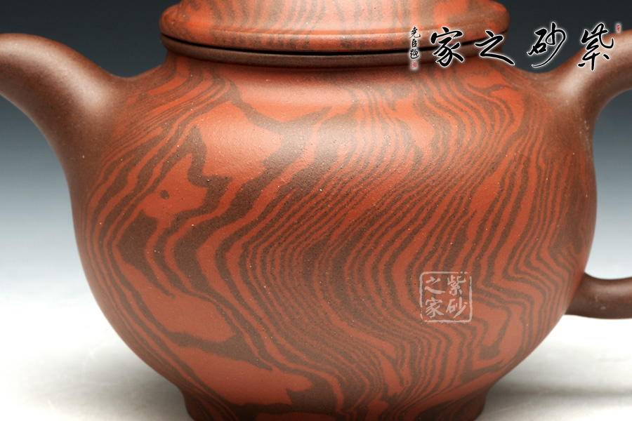 紫砂絞泥是采用兩種或兩種以上不同顏色的紫砂泥,經(jīng)人工揉合、按壓、層疊、鑲嵌等多種手法絞和而成,再通過拍打泥片,并按要求切割泥片、鑲接泥片, 直至打 好身筒,這樣便在壺身上形成不規(guī)則卻十分自然和諧的紋飾圖案,如天際流云、似雨后彩虹;如湖光山色、似大漠原野等等,這些雖在小小的壺面上呈現(xiàn)出虛虛實實的圖象,卻能以小見大地營造出亦真亦幻、自然天成的意境,這正是紫砂絞泥具有的裝飾性。