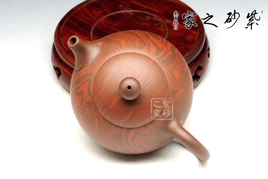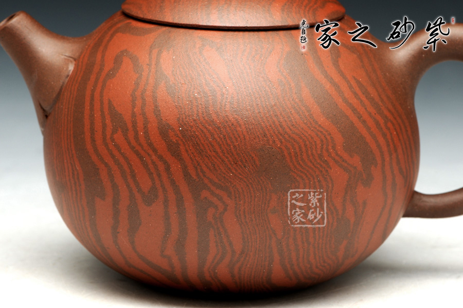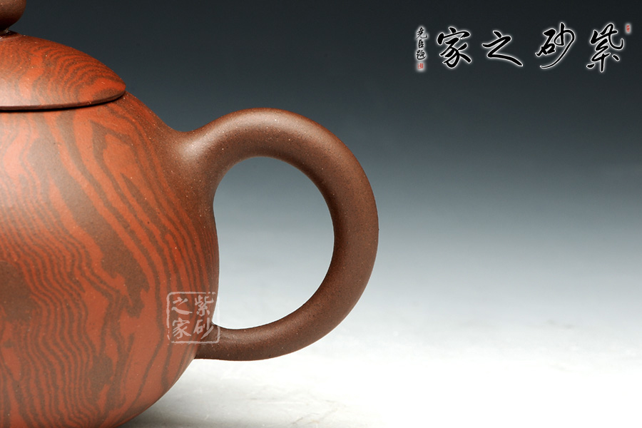 此西施壺以絞泥為韻,其小巧形象如同著演繹一個(gè)豐滿誘人體態(tài)的少女,令無數(shù)人競(jìng)折腰。中國(guó)美女代表式的櫻桃小口做流嘴,微啟欲說,明接以如意紋飾之;而壺鈕似圓珠,典雅的裝扮出倒把壺,顯得更加的成熟與雅致,更是惹人喜愛;整器雅韻深沉,不同于一般西施壺,吉祥如意,耐人尋味。