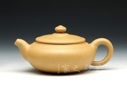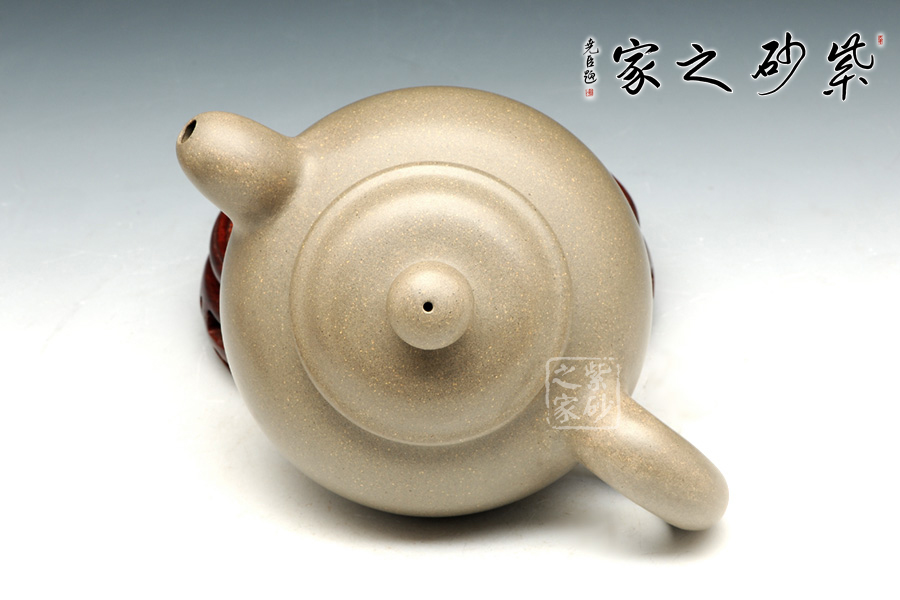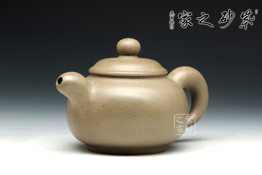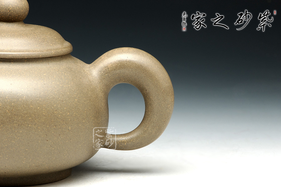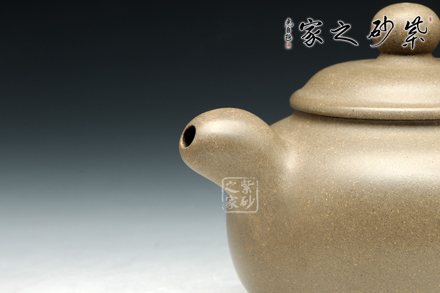 此壺壺身線條流暢,渾圓飽滿,如珍珠一般晶瑩剔透。壺身雖無任何裝飾卻更能展示紫砂的典雅之美,整個(gè)壺完美無暇。壓蓋子母線嚴(yán)絲合縫,整器渾然一體。一彎流暗接于壺身,豐腴可愛,于壺口處收縮為一小圓,出水爽利。耳形端把渾厚大氣,與壺嘴相對(duì)應(yīng),如此端把,端握起來極其舒適稱手。此壺,是一款難得的光素器。