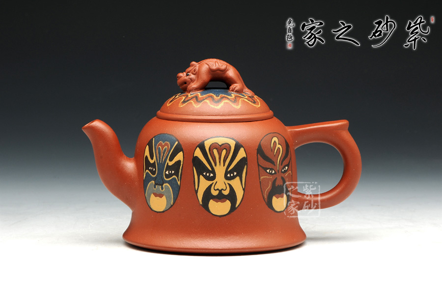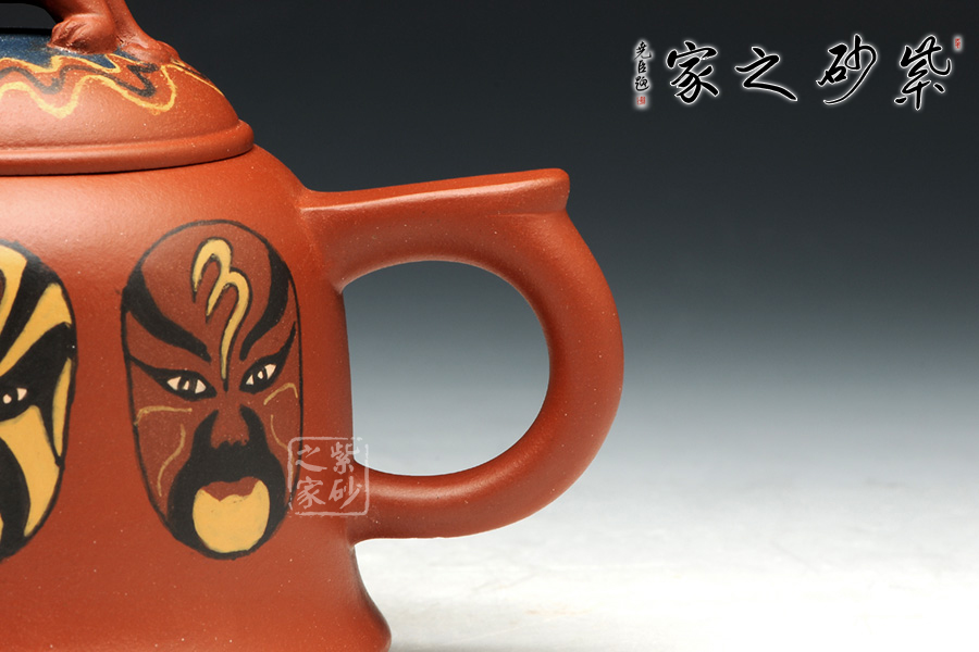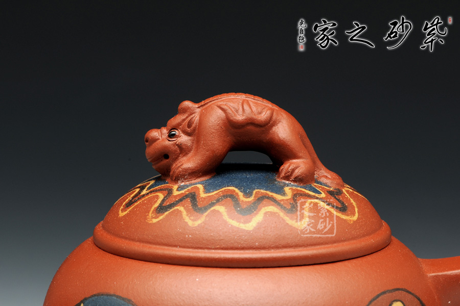 此壺運(yùn)用鑲泥手法,從左到右海南龍王敖潤、東海龍王敖廣、靈官。加之壺鈕龍行,相輔相成,紫砂與傳統(tǒng)藝術(shù)的結(jié)合,美不勝收。