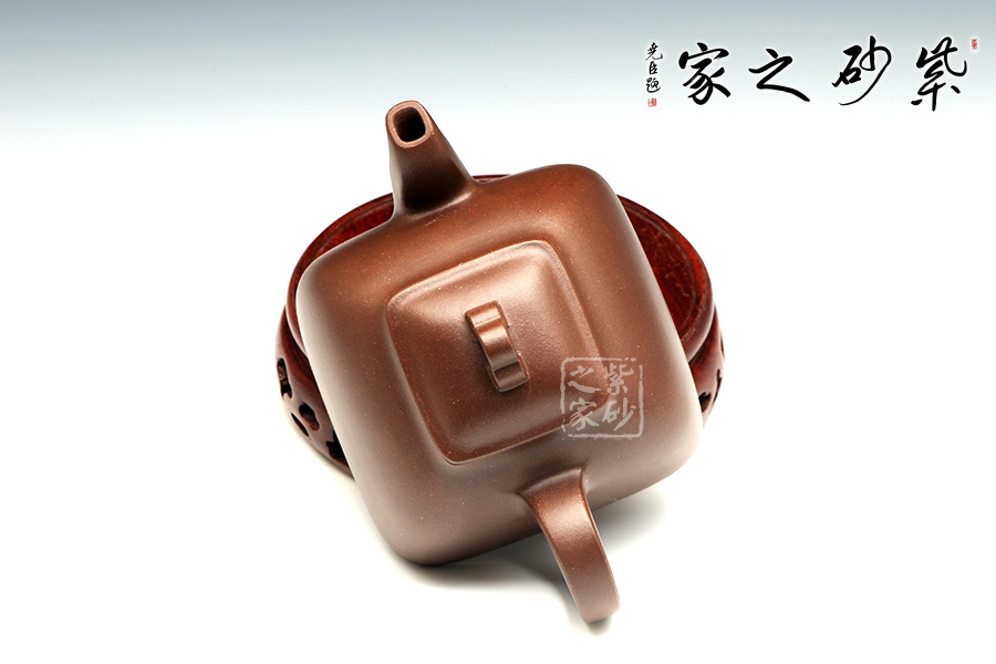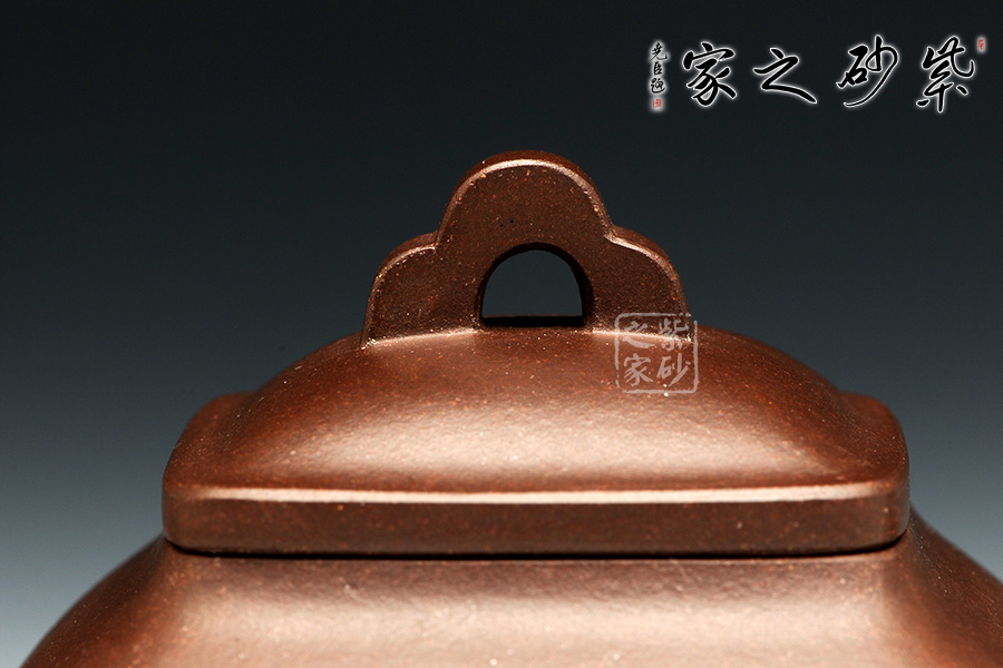 此壺名為四方橋頂,大氣端莊,壺身線條流暢硬朗,但壺肩與壺身過渡自然,圓潤有度。該壺的壺嘴,壺把,壺蓋,皆是方而不銳,朗健而柔和,該壺通身比例精準(zhǔn)協(xié)調(diào),足見制壺者高超的制壺工藝。此壺最大的亮點(diǎn)在于壺鈕的新穎設(shè)計(jì)。壺鈕如橋,仿若杭州西湖的斷橋,承載無數(shù)歷史故事,讓人聯(lián)想不斷,此壺在實(shí)用的同時(shí),更韻味無窮,值得欣賞把玩!