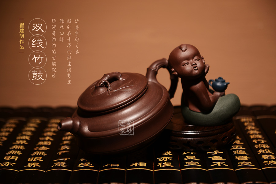 瞿建明,國家級(jí)工藝美術(shù)師,1969年生于宜興,88年工種畢業(yè)后進(jìn)紫砂工藝二廠隨工藝美術(shù)師范早大學(xué)習(xí)制壺技藝,憑著對(duì)紫砂藝術(shù)的熱愛,刻苦鉆研,虛心好學(xué),制作技法日益成熟,藝術(shù)創(chuàng)意變化多端。后有幸得到工藝美術(shù)大師徐漢棠的精心指導(dǎo),悟出紫砂藝術(shù)的許多真諦,形成了自己的獨(dú)特制壺風(fēng)格。2002年創(chuàng)辦了“悟陶居”工作室。所創(chuàng)作品具有較高的文化品味,多次在國內(nèi)外精品博覽會(huì)上獲得大獎(jiǎng),深受國內(nèi)外紫砂愛好者的喜愛。