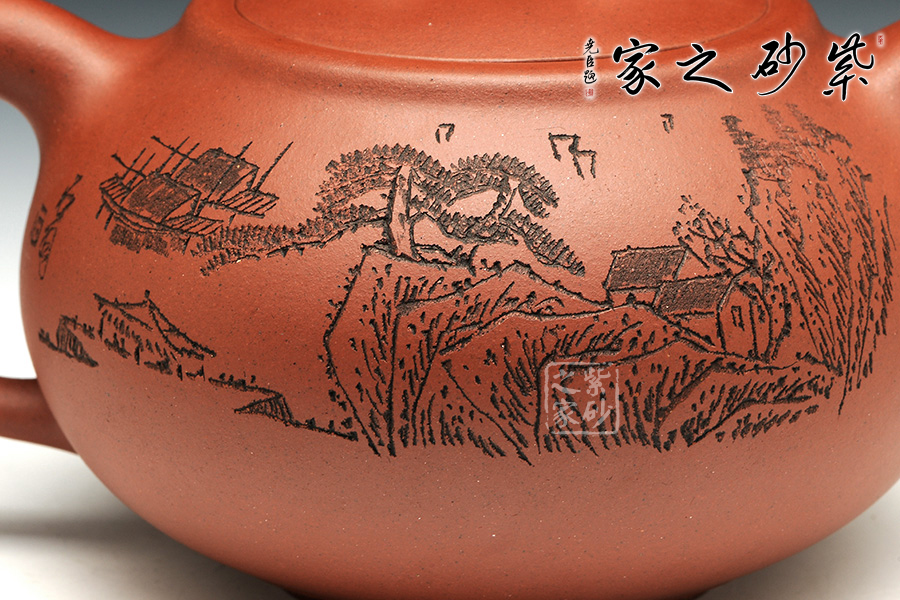 此壺造型精巧,刻繪尤為引人入勝,是品茗把玩的首選之作。