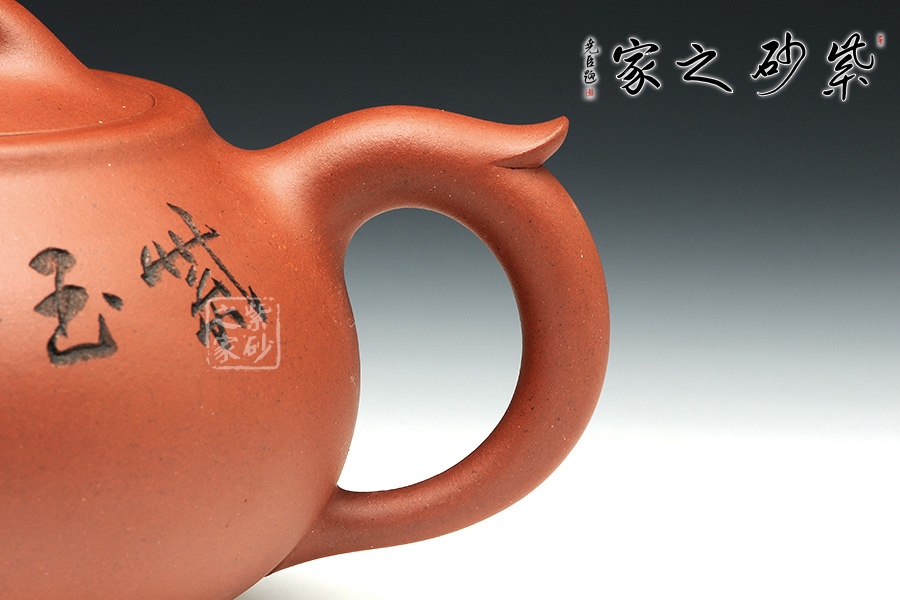 壺型以圓為基礎(chǔ),做得圓滑舒暢,讓人贊嘆。壺身為一個(gè)半球,略微壓扁,加圈足和護(hù)肩,上下兩面對(duì)稱,更顯圓滑可愛。壺嘴和壺身銜接非常密切,渾然一體,出水口尖似鳥喙。壺把略微隆起,飛把設(shè)計(jì)更似鳥尾。嵌蓋設(shè)計(jì)平滑樸實(shí),橋型鈕橫陳其上,更為傳神。通體觀之,此壺就如雀鳥立于枝頭。