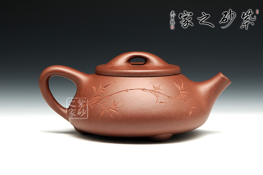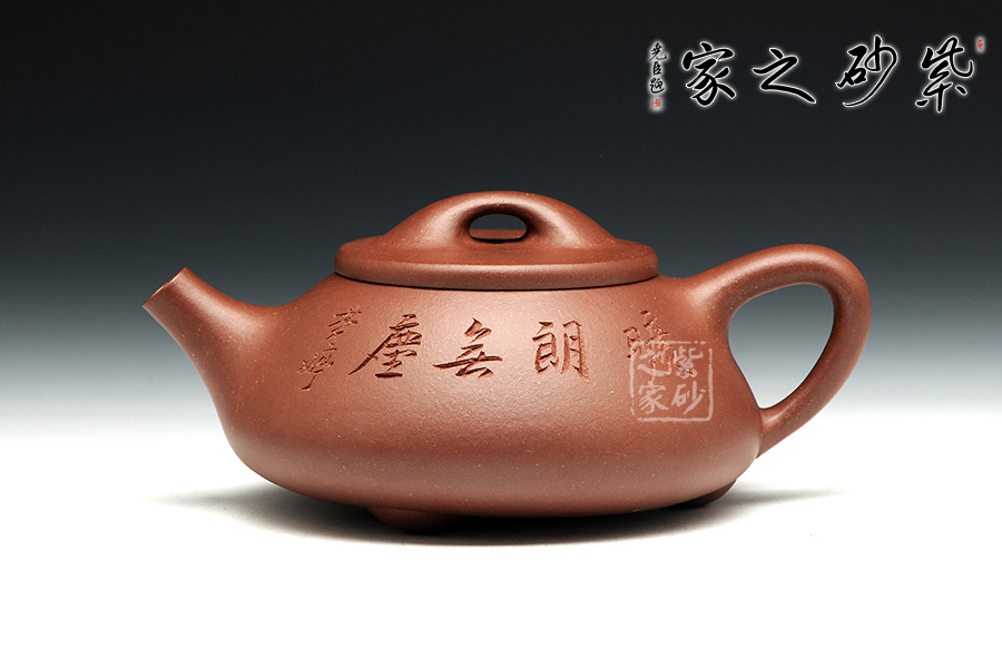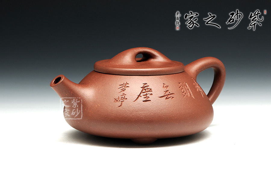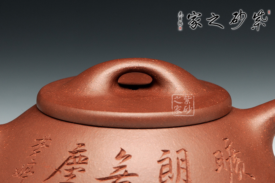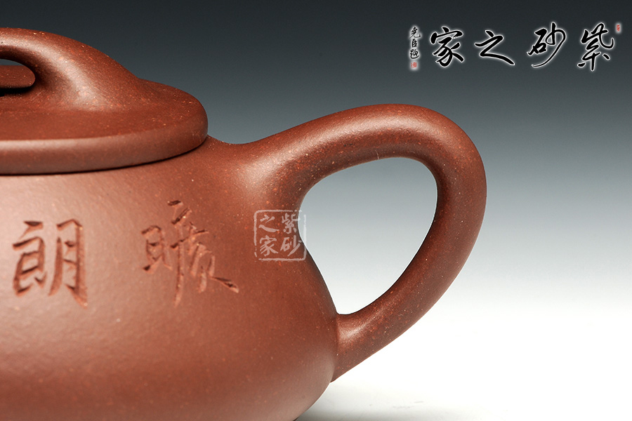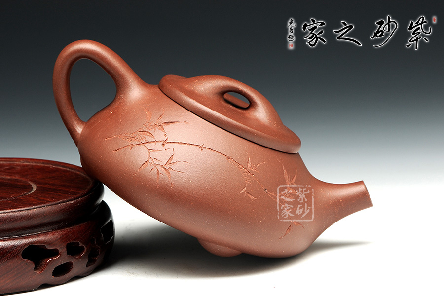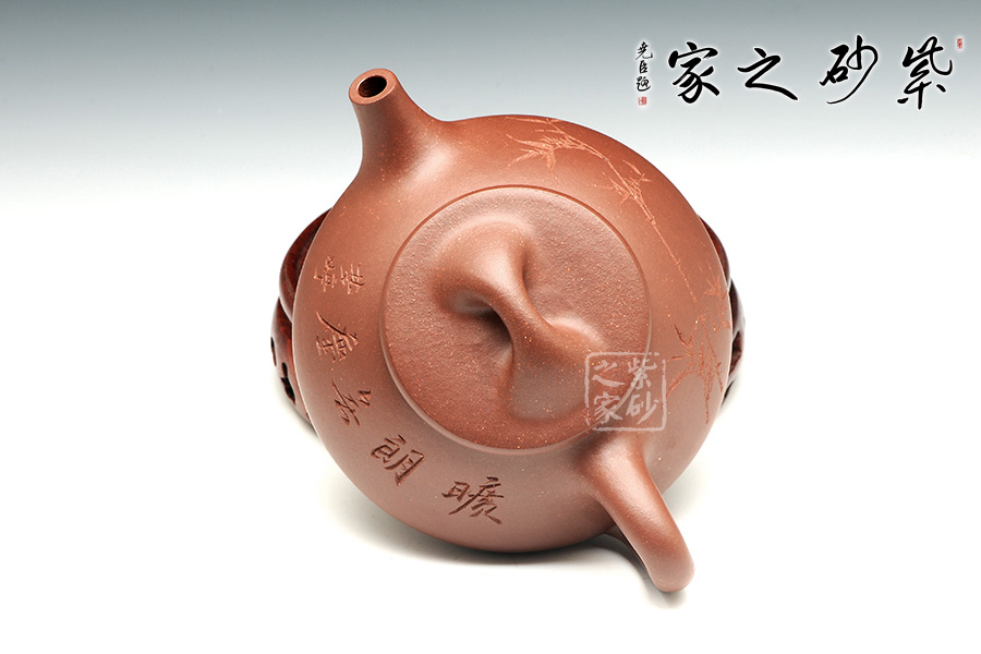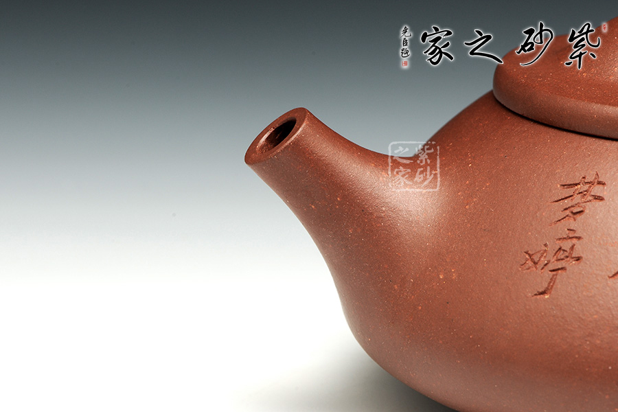 景舟石瓢壺為大師顧景舟將傳統(tǒng)的石瓢壺形制略作改良制作而成,比起以往的石瓢壺,獨有一番風(fēng)味。橋鈕看起來肥大然而提捏之處細膩,拿捏方便,鈕孔形成一個飽滿規(guī)整的扁圓,足見做工精細。平蓋壓口,從蓋沿線可以看出壺蓋質(zhì)薄而形堅,且略大于壺口,形成完整的鎖口之勢,氣密性極佳。整款壺壺身較矮,口蓋略大但不覺過分寬闊,壺腹飽滿敦厚,顯示出渾厚的內(nèi)蘊。直流嘴略微呈錐形,嘴口看似喇叭狀,出水爽利,流勢酣暢淋漓,趣味性十足。
