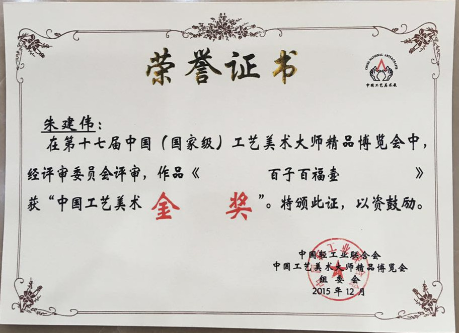 ▼ 第十七屆中國(國家級)工藝美術大師精品博覽會金獎