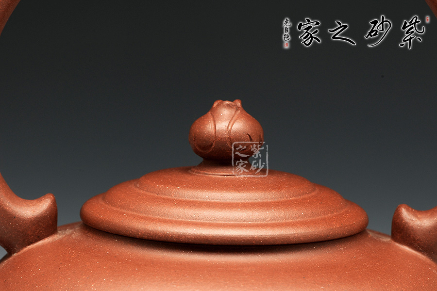 此壺造型藝美簡單,壺身圓潤有感,周身線條柔和,曲線弧度自然,上下收斂,上成口下成底,相互呼應,簡單內斂。壺嘴直流從壺身續(xù)出,提梁把似彩虹當空,一臥而過,曲度和整器相襯。微微隆起的壺蓋,層次分明,上似一顆含苞待放的蓮子,顯得清雅異常。