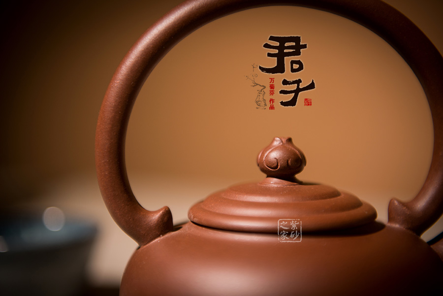 萬菊芬,國家級工藝美術師,1973年出生于著名的陶都宜興,從小就對紫砂產生了濃厚的興趣,1990年進紫砂工藝廠得到多位制壺前輩和制壺名家的悉心指點,技藝日益精湛,曾創(chuàng)制過許多名壺佳作,憑著與生俱來的審美感,跳躍的思維,善于吸取古典藝術精華,經過多年對壺藝執(zhí)著的鉆研,練就了一手過硬的紫砂壺造型設計與制作本領,尤擅長朱泥小品創(chuàng)作,所制的作品功底深厚,造型典雅,線條流暢,氣韻生動,具有傳統(tǒng)壺藝的神韻和魅力。作品多次參加國內外展出并獲獎,深受國內外壺藝愛好者的喜愛與收藏。
