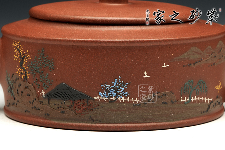 A面: 裝飾: 山水 裝飾者:陶刻藝人 裝飾內(nèi)容: 山亭小景,寧靜自然