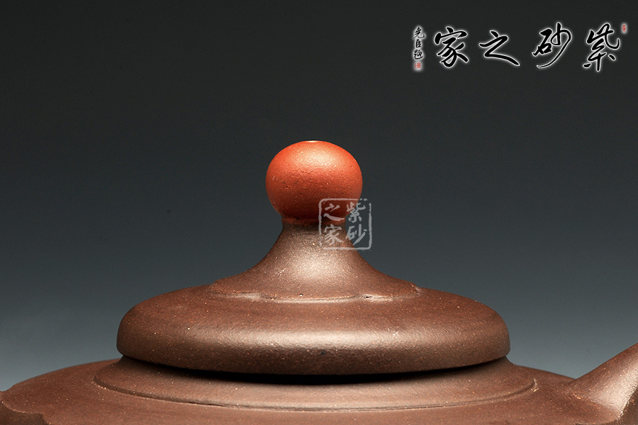 這款原礦紫泥一頂紅壺,制作工藝精湛,壺身似筋紋為六面,分割比例均勻,陰陽相接,流把胥出自然,出水有力。壺肩處以平肩過度至壺口,壺底亦如是,承上啟下,彼此呼應。截蓋隆起飽滿的弧度,上頂紅珠,好似旭日東升的太陽,紅潤而不艷,給人一種溫暖如沐的感覺,讓人在品茗之余凝神靜氣。