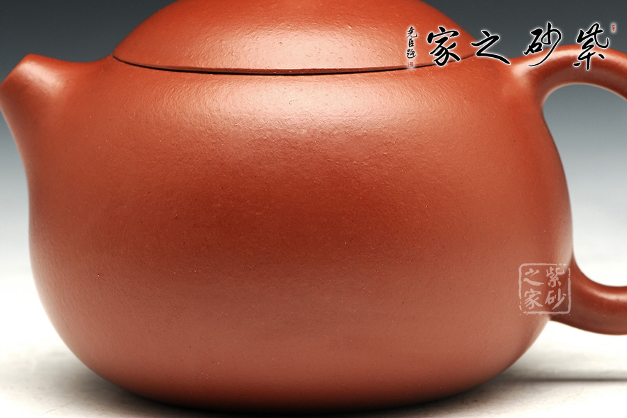 特點:質(zhì)感綿密、緊實細緻,持之扎實沉重、紅潤豔麗,泥中極品,無以倫比;泥胚含少許原礦顆粒,沖淋熱水后色變極大,呈紅中帶紫,養(yǎng)壺易現(xiàn)“包漿”之美。