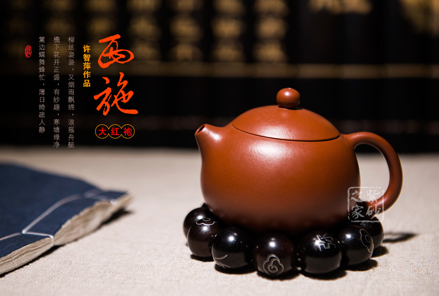 大紅袍制西施,色澤艷麗動人,恰似那風華正茂的少女朱唇。渾圓的壺身、小巧的壺嘴、倒把設(shè)計,全部都是少女身上所具有的美感特質(zhì),所以西施之美,永遠不會埋沒。