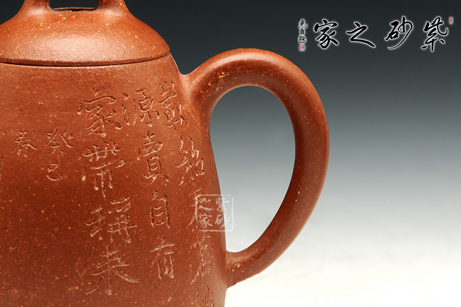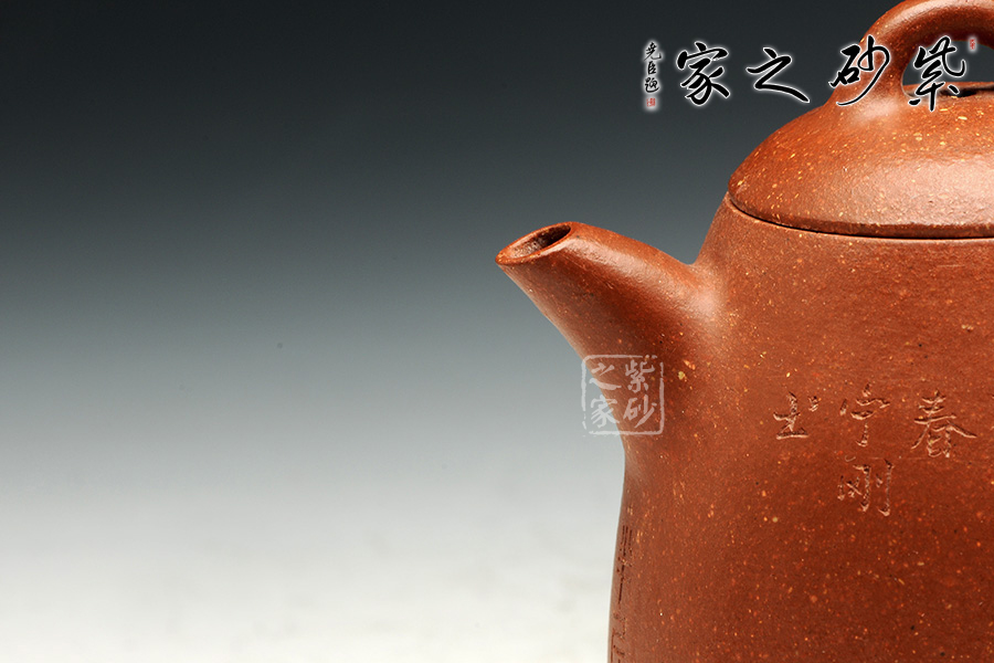 泥性:原礦因含緞泥、紅泥、紫泥等諸多共生礦,陶之后,于深沉之“橙紅色”底上,滿佈五彩斑斕的粗細、深淺之紅、黃星斑點。