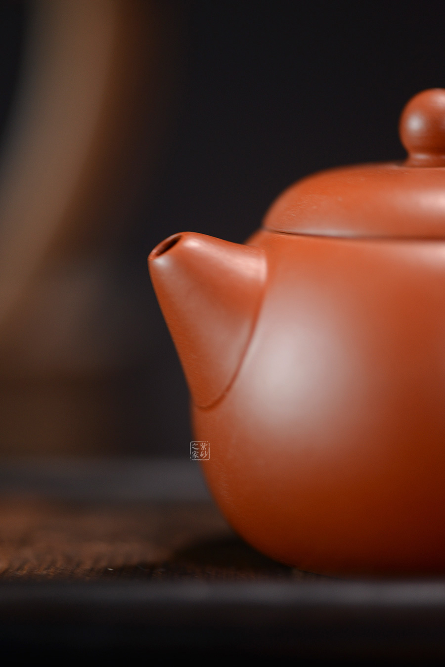 簡介:朱紅微嫣具綿密柔滑之砂感,水色溫潤度中等;熱水沖淋立展嬌嫩鮮紅特色,壺身游移紫光遽現(xiàn),神秘迷人風(fēng)韻令愛壺人神醉。以之沖茗之茶湯明亮活潑、快意果決、易展揚香而聚甘柔甜。朱泥原礦,胎骨堅硬而沉實,色澤朱紅略泛桔光,溫潤透明質(zhì)感之佳,與清中期頂級朱泥無異;大器無法燒成,小品燒成后穀皺紋隱現(xiàn),頗具古代朱泥風(fēng)華。趙莊的朱泥原礦灰、白、帶黃棕色,呈片狀結(jié)構(gòu);本原礦由于泥性較重,故較不易成砂,需採自嫩泥礦中較堅硬的部份(年代較久, 且成陶后色調(diào)較紅豔,古稱“石骨”),再經(jīng)敝古陶研究所繁複全手工的練製程序后,始能成陶!