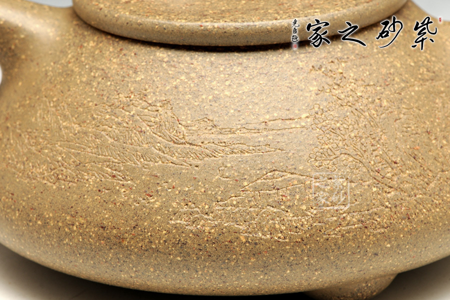 泥性:感甜嫩綿密,質(zhì)堅而溫潤,呈近田黃色調(diào),為江蘇宜興趙莊山系朱泥礦~黃石黃之共生礦,經(jīng)挑揀練製而成,因含鐵量只達(dá)6%左右,致陶之后呈“金田黃色”。