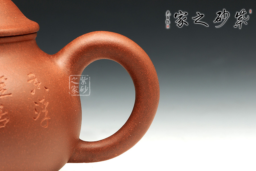 這款潘壺造型經(jīng)典,壺腹如鼓向下緩緩收成底,壺肩之處略微收縮成短小壺頸,壺體整體氣質(zhì)豐腴而飽滿,又不失典雅,壺蓋微微隆起,壺鈕型制與壺身一 致,相互呼應(yīng),一彎流壺嘴與壺身暗接相連,明針處理到位。