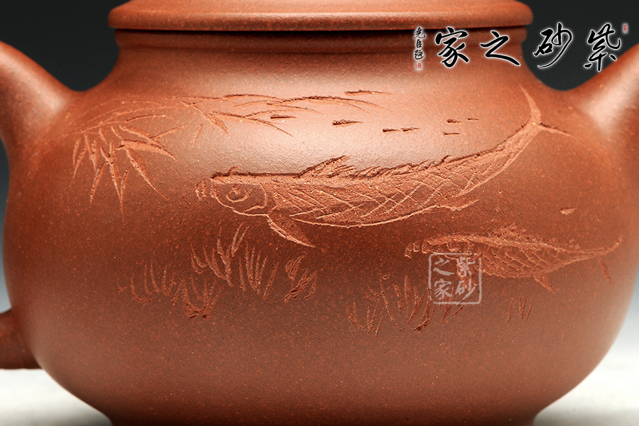 B面: 裝飾: 景物 裝飾者:陶刻藝人 裝飾內(nèi)容: 魚樂