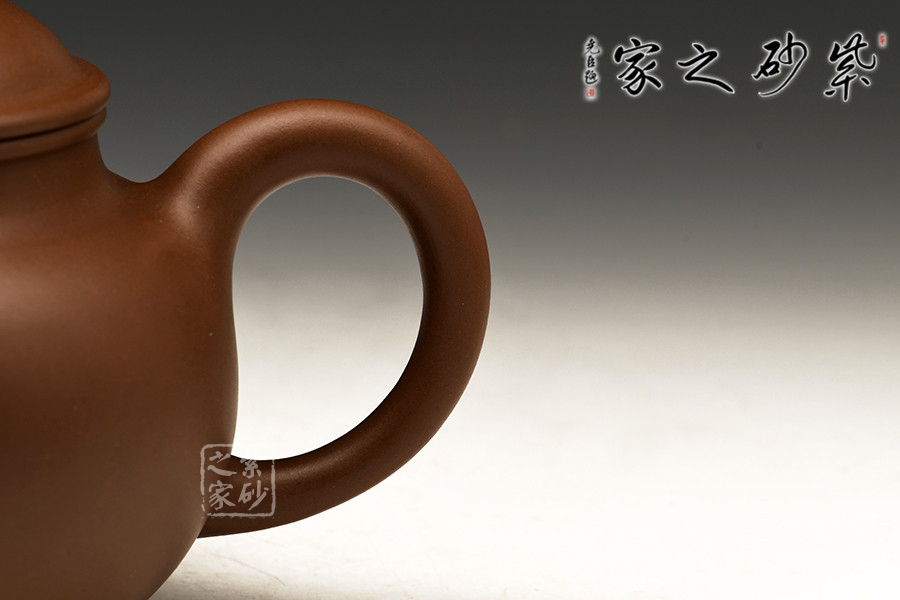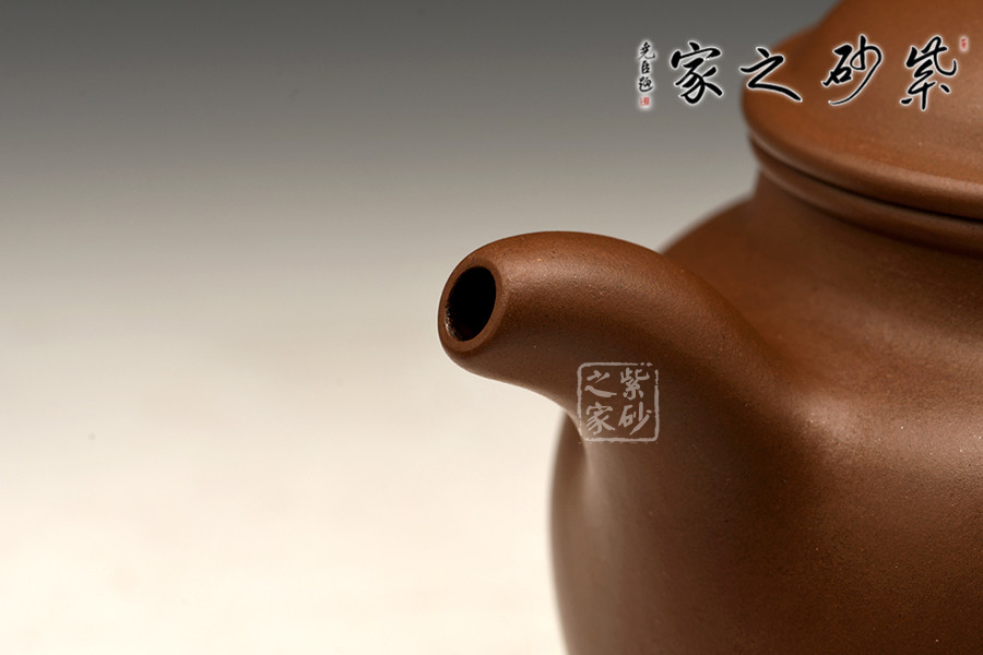 在細節(jié)處,壺蓋的卷沿厚重有力,古樸大方,形成強悍的壓蓋之勢??谏w銜接緊致,壺頸流暢,略平肩,壺肩至壺身過度自然合歡,既充分保證了類似球體的立體感,又協(xié)調(diào)了各部份,功力老辣。一彎嘴昂揚,氣勢十足,耳形把精巧,使得整款壺比例勻稱,造型大氣,值得壺友珍藏!