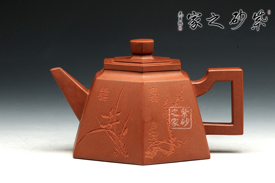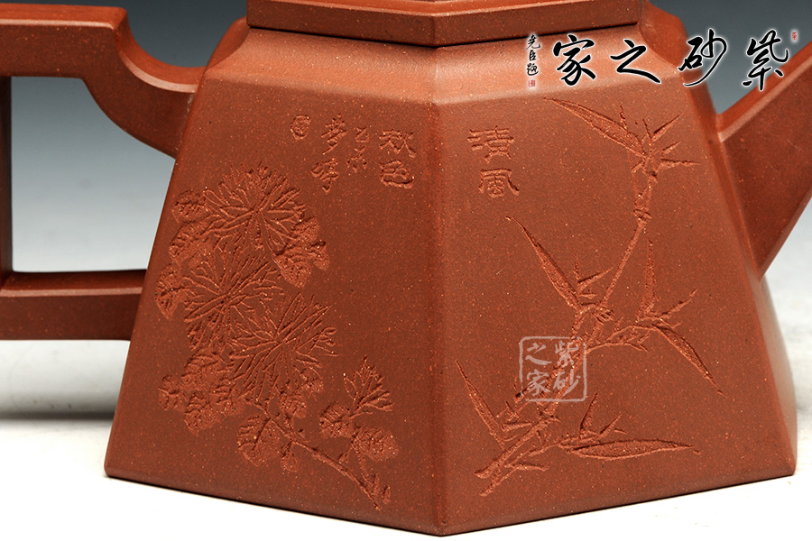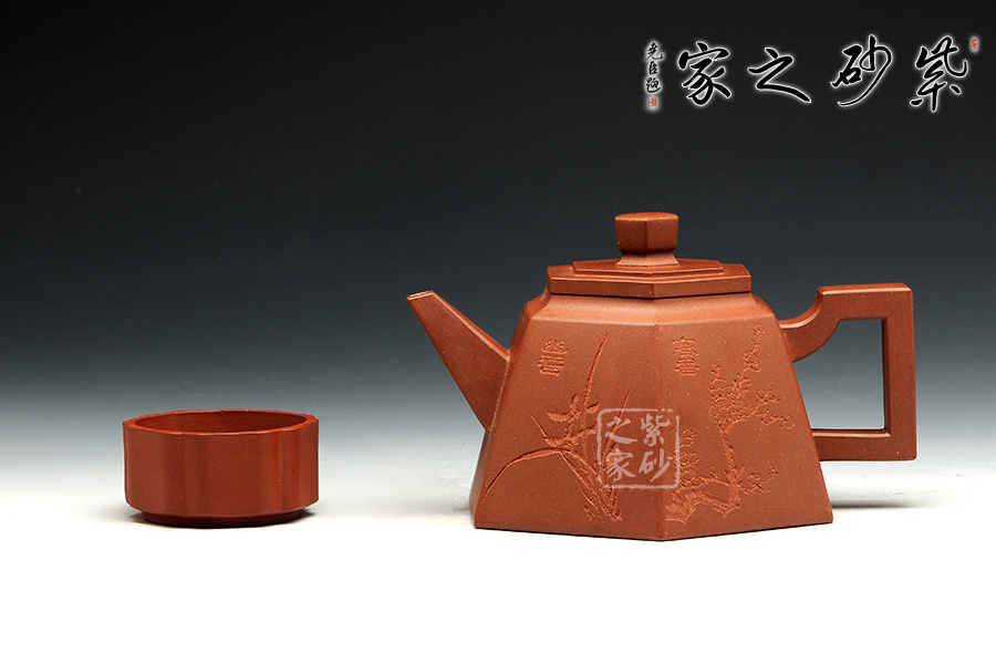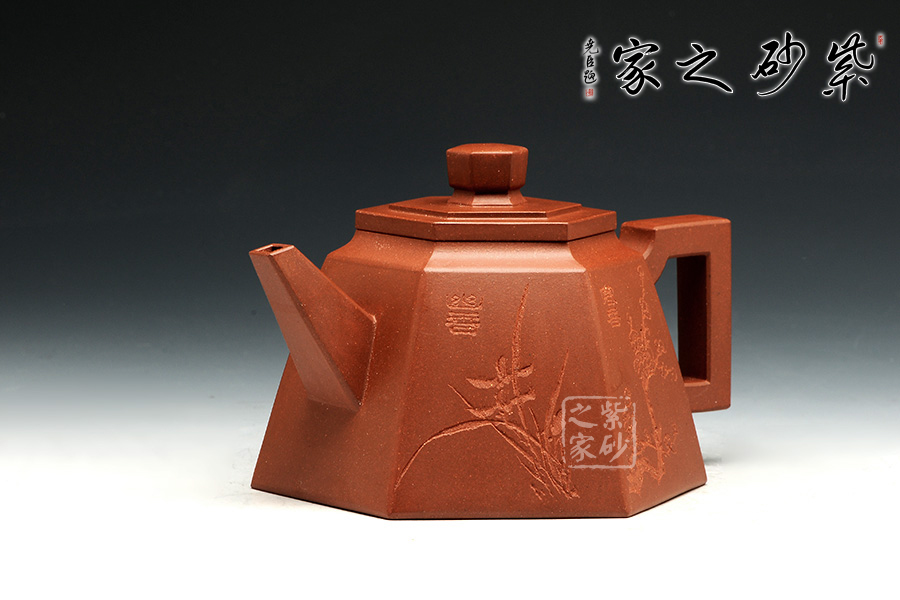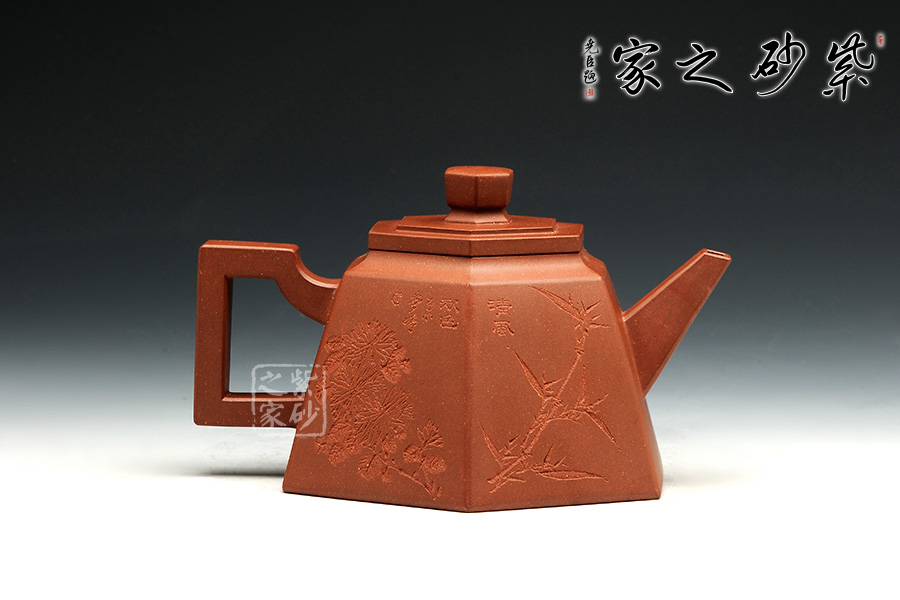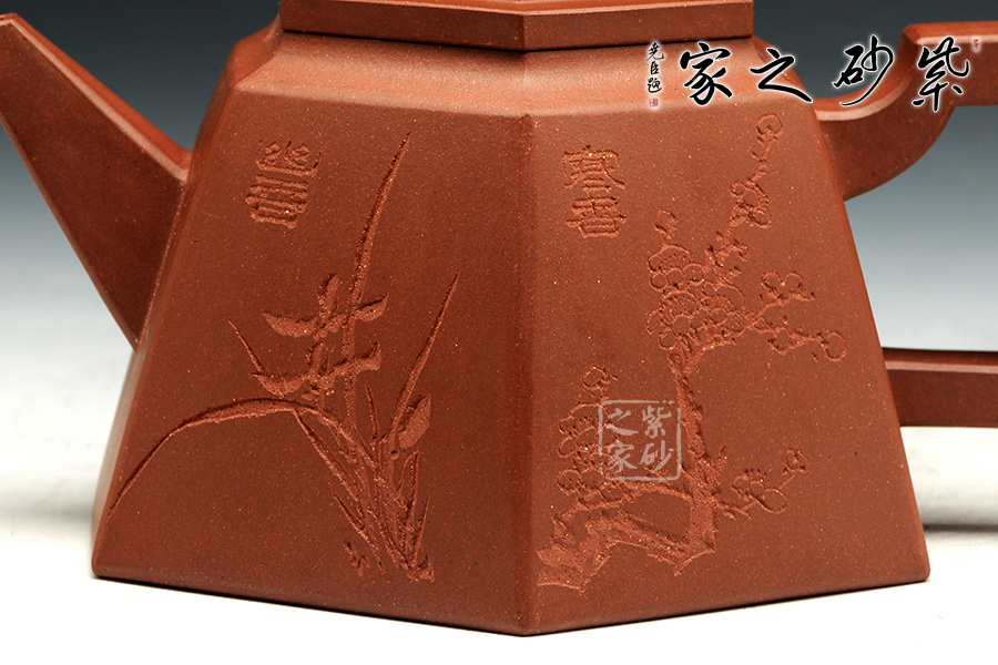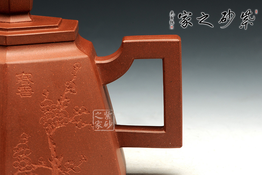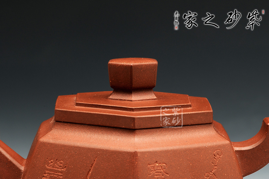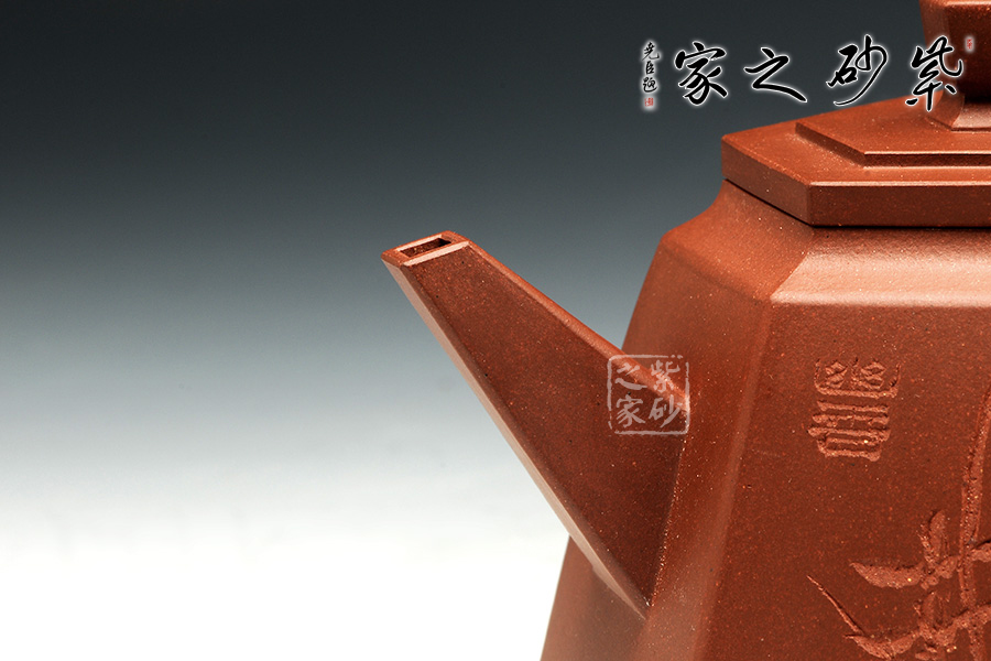 此六方合斗為經(jīng)典款式,為老師全手工制作而成,做工嚴(yán)謹(jǐn),且上手具佳。壺身呈六棱柱型,壺蓋與壺口相就對(duì)亦呈六方形,有與壺相呼應(yīng)的小柱鈕,不規(guī)則四棱形彎流壺嘴以及方正型壺把,壺的所有部位與壺形體相稱,整體線面挺括平整,有棱有角,給人明秀挺快,干凈利落的陽剛之美,做到“方中求變,口蓋劃一,剛?cè)嵯喾Q”。