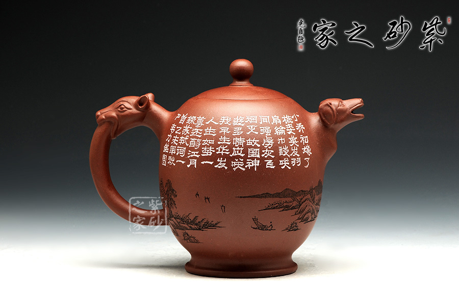 同時,生肖狗千百年來,便是人們的忠實朋友,看家護院,任勞任怨,流下了千古的美名。這款作品又極為大氣,且寓意深刻,不失為一款大作。壺身刻繪山水詩詞《赤壁懷古》。