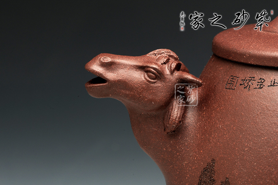 此壺設(shè)計(jì)簡(jiǎn)練,線條飽滿周正,壺嘴與壺把以馬獸首為造型,貼切原型。平壓蓋似圓盤,橋型壺鈕似如意吉祥諧和,壺底圈底更加平穩(wěn)踏實(shí)。