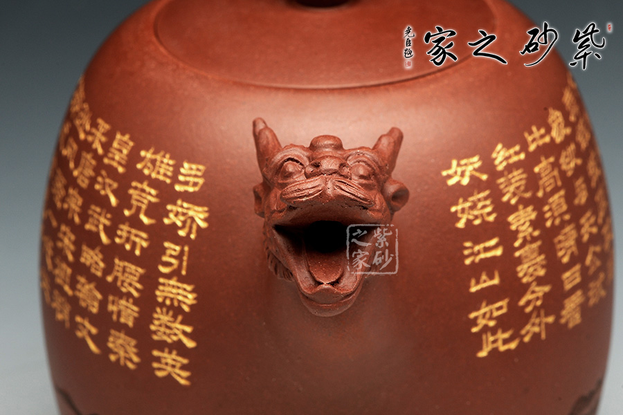同時,十二生肖中龍在中國傳統(tǒng)文化中是權(quán)勢、高貴、尊榮的象征,又是幸運與成功的標志。這款作品古樸內(nèi)斂,且寓意深刻,壺身刻繪山水詩詞《北國春雪》。