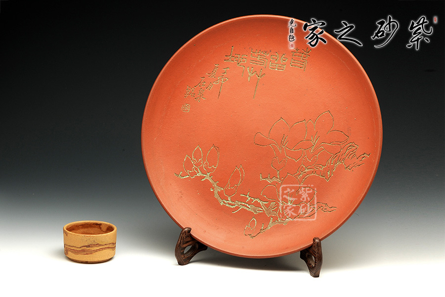 一、 個(gè)人風(fēng)格的形成要在繼承、借鑒前人傳統(tǒng)的基礎(chǔ)上不斷探索,不斷創(chuàng)新,不斷升華,真正形成自己的特點(diǎn)。紫砂陶刻是以紫砂泥材質(zhì)為載體的,因此要在充分發(fā)揮紫砂泥特性的基礎(chǔ)上,汲取古代中國(guó)畫(huà)中的十八描技法,融匯貫通,根據(jù)不同的題材,或抑揚(yáng)頓挫,或逆鋒疾馳,或輕刮淺刻,或提刀雕琢,或陰刻或陽(yáng)雕。“唐宮佳麗美人瓶”、“太湖頌陽(yáng)雕書(shū)法掛盤(pán)”等等可以說(shuō)是此中比較成功的嘗試。
