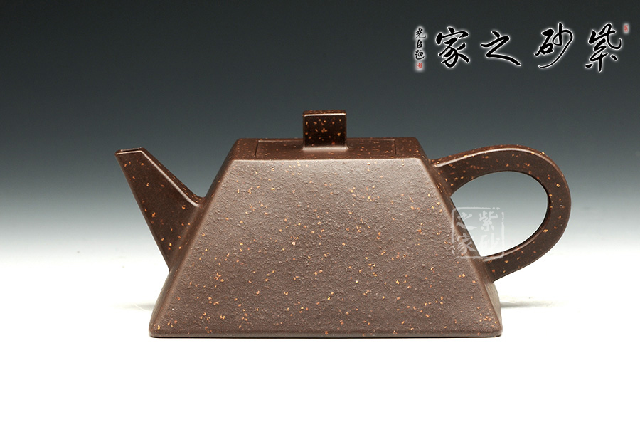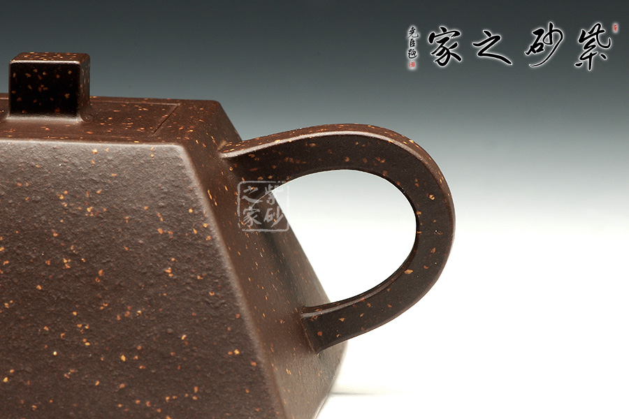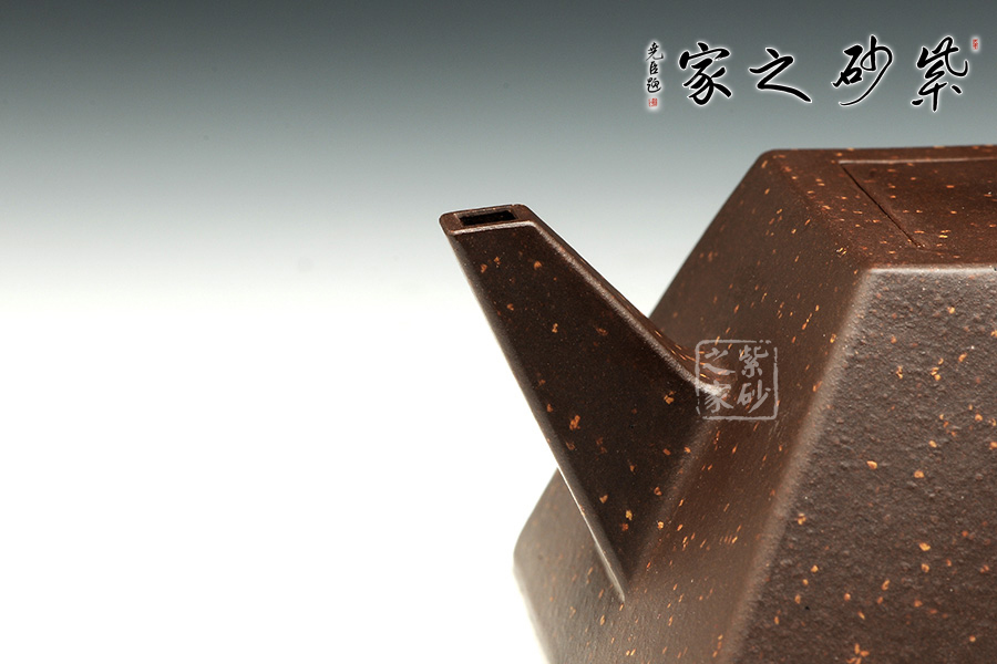 此款方斗壺,方壺中的代表壺型,此壺大氣周正,線面調(diào)和,品相端和,工藝精巧。作品線面挺括平正,輪廓線條分明,原礦紫泥精制而成,星砂點(diǎn)點(diǎn),線條明朗有節(jié)奏,整器擁有陽(yáng)剛之氣,整體更顯正直凜然之風(fēng),線條流 暢,輪廓分明,平穩(wěn)莊重,達(dá)到了方器方中求變,實(shí)為剛?cè)嵯喾Q的最高境界!