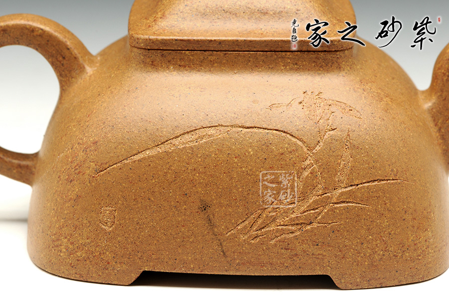此壺精選原礦段泥,泥色溫潤古樸,壺型古拙典雅,壺把拿捏舒適。壺形底方肩渾,下寬上收,穩(wěn)重而雅致。至頸項與口沿交接處再度渾方。三角橋梁頂,簡潔大方。四方足托空壺體,呈虛空感,流二彎順胥,把耳孔與壺身協(xié)調(diào)一致。線面流暢,菱角清晰而圓渾,適宜把玩。內(nèi)外處理干凈利索,精工細作,嚴(yán)謹而不失古韻。