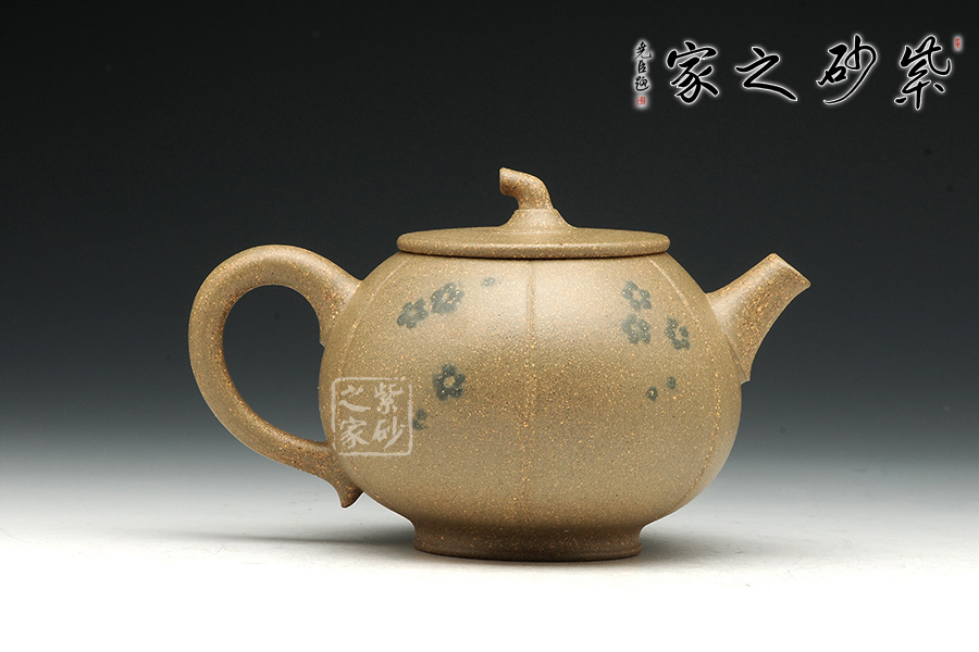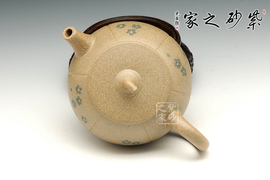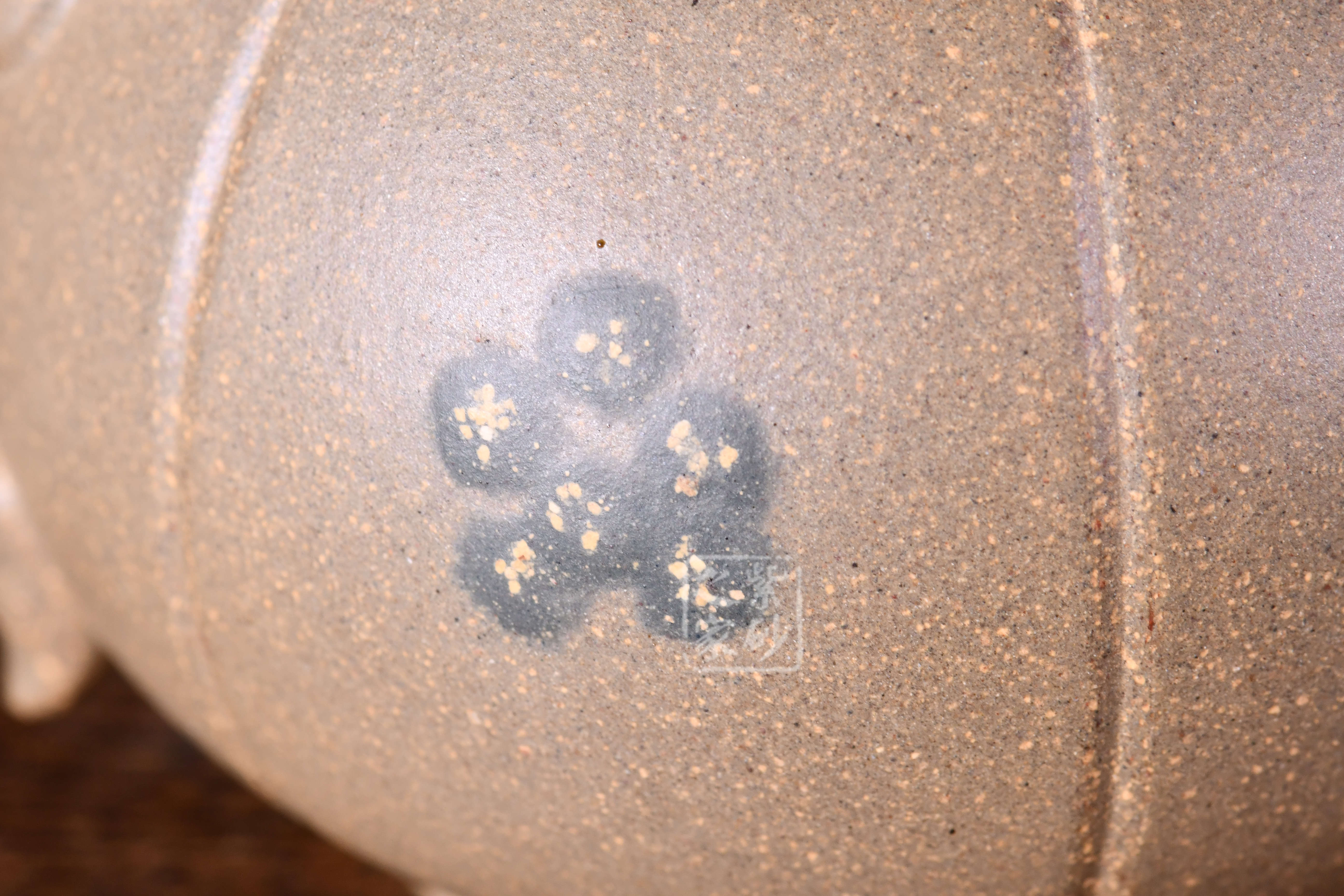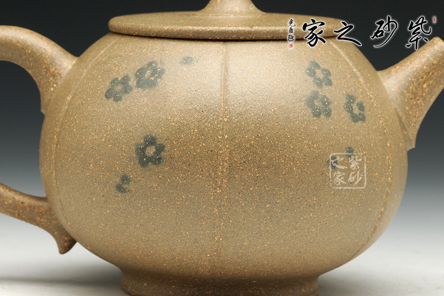 此壺名為“秋碩”,意為碩果累累的秋天是豐收的季節(jié)。此壺壺身扁圓謙和,圓平蓋設(shè)計(jì),好似熟透的瓜果,靈動(dòng)而有生氣。整體色澤之古樸自不待言,器形之簡(jiǎn)單、線條之收斂何處不體現(xiàn)出一種淡然之態(tài),即便是需要承擔(dān)整個(gè)壺體之中的壺鈕、流香茶之源的壺嘴,處處都是自然而出,毫不張揚(yáng),如同自然中孕育而出的逸美。加之,壺身之上花朵點(diǎn)綴,情趣有感!