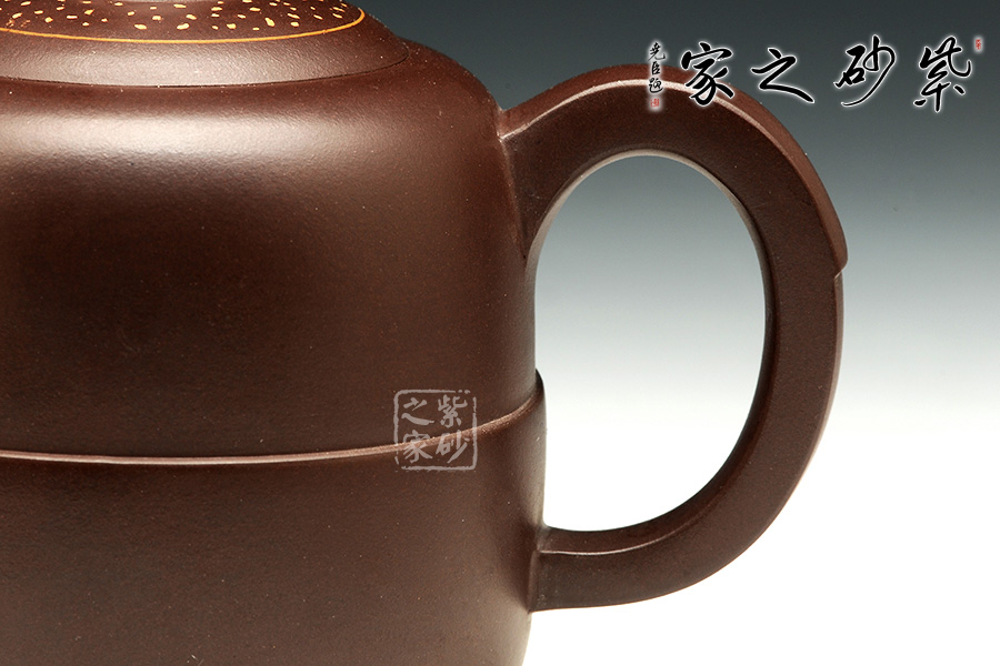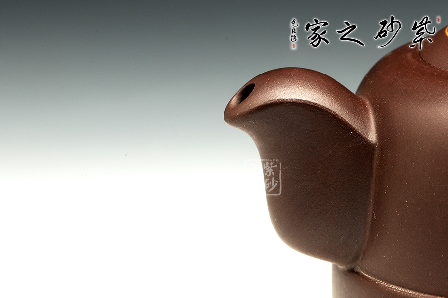 此壺選用原礦紫泥制作,細(xì)膩的外表色澤內(nèi)斂樸實(shí)。壺身圓形藝美,壺底之處圈底自然,典雅不失趣味。壺蓋上壺鈕如柱,造型小巧,星砂點(diǎn)點(diǎn),寓吉祥福氣之意。壺流把端莊厚重,內(nèi)斂而古樸,拿捏適手。壺嘴彎流,憨厚沉穩(wěn),出水利落,福氣安康!