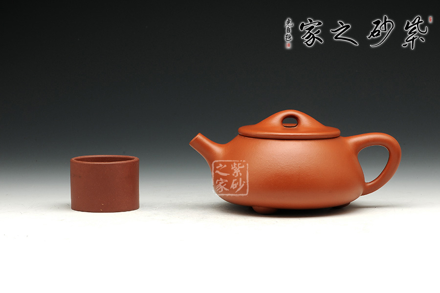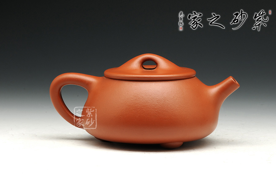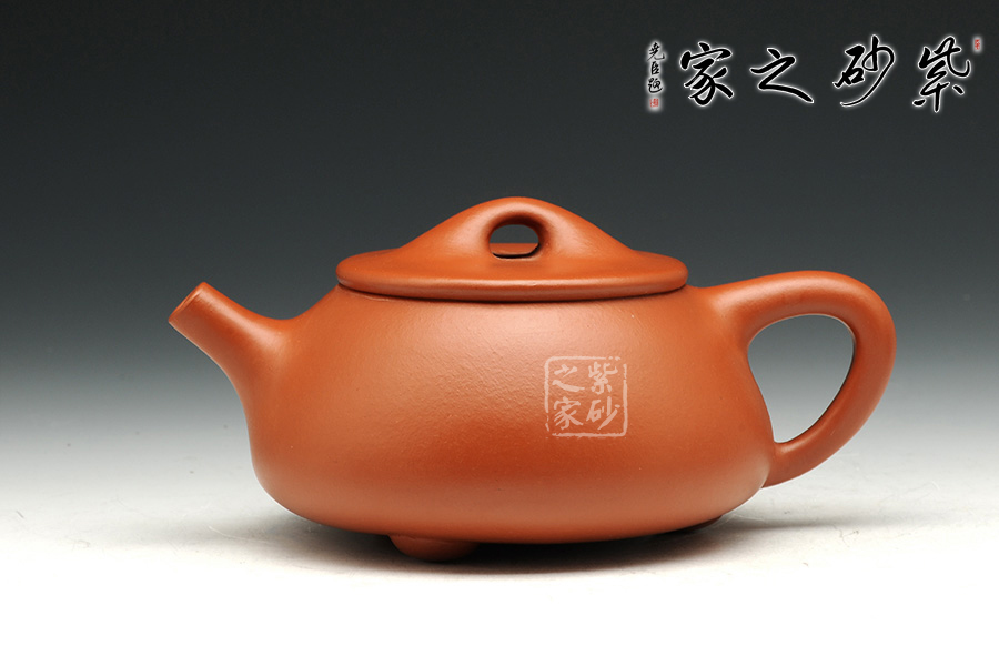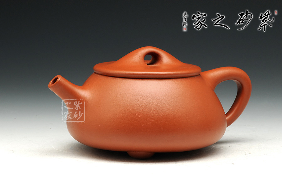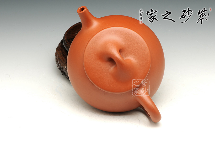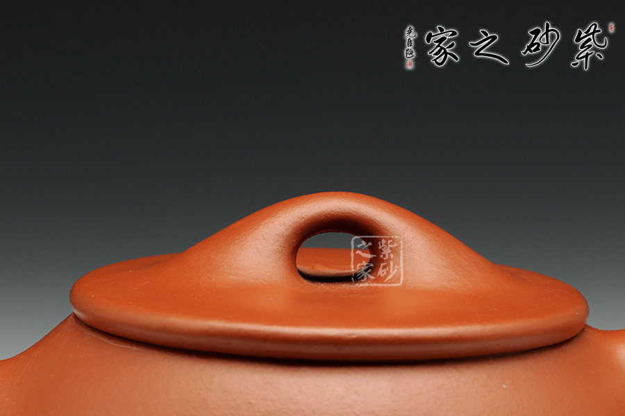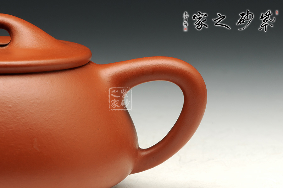 經典的石瓢壺型,整款器型非常到位,石瓢挺俊之美表達得盡善盡美、淋漓盡致。造型簡練,古樸大方,剛中有勁。流把鈕均為暗接手法,與壺身宛若一體,可見功力。此壺選用原礦朱泥制成,其泥質細膩大氣,不落俗套,色澤沉郁古拙,極富古韻,三角倒把張弛有度,比例恰到好處。