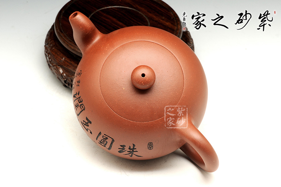 一粒珠,壺鈕與壺身均為圓潤飽滿的球形,晶潤溫婉。截蓋設(shè)計,壺蓋與壺身融為一體,更顯示出壺身的圓潤,一粒碩大的壺鈕與壺身相映成趣。三彎流婉轉(zhuǎn)胥出,渾厚飽滿,嘴頭明顯收縮,形成嬌憨可愛的氣韻。壺把與壺嘴相對應,把體憨厚瑩潤,中間渾圓粗壯,不僅比例均衡,而且拿捏有力。整個壺身圓潤至極,一捺底穩(wěn)穩(wěn)挺立,平添幾分穩(wěn)重端莊的氣質(zhì),觀之可親。