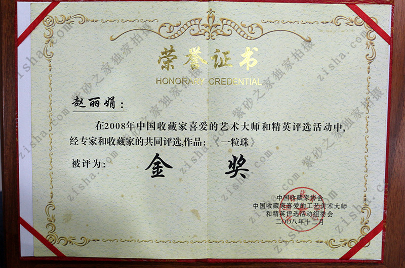 2008年11月 作品《合歡提梁》獲中國收藏家協(xié)會金獎