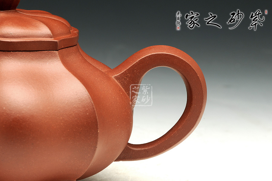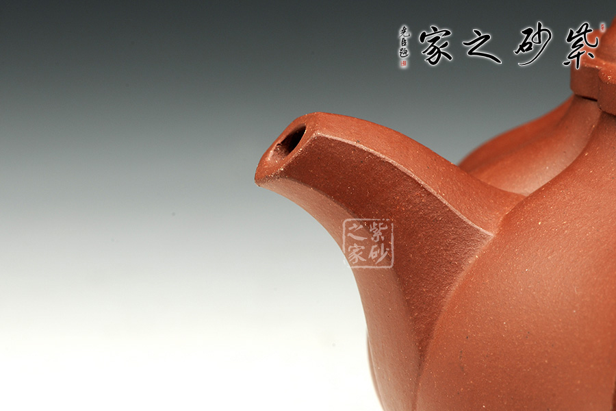 此壺精選原礦底槽青泥制成,泥質(zhì)柔嫩細(xì)膩,入手生溫。壺身偏扁細(xì)膩,下豐上斂。菱花于壺身上綻放,自然形象,雅韻十足。壺鈕扁狀,精致小巧。壓蓋設(shè)計(jì),菱花與壺身線條相結(jié)合,完美貼合,氣密性良好。壺嘴和耳把細(xì)膩?zhàn)匀唬∶烙辛Α氐姿男∽悖瑒t分外可人,襯托整器。觀之整器,為實(shí)用的精品,也是欣賞和把玩的藝術(shù)品,值得推薦。