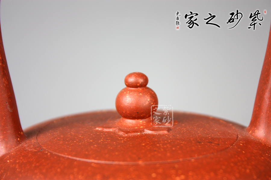 此壺自然古樸,壺砂質(zhì)溫潤細膩。造型簡樸,壺形突出蓮子壺鈕,造型別致,骨肉亭勻。可謂紫砂茗壺造型中的一件佳器,看似簡單,卻體現(xiàn)出壺藝家的功力和純熟深厚的技藝。