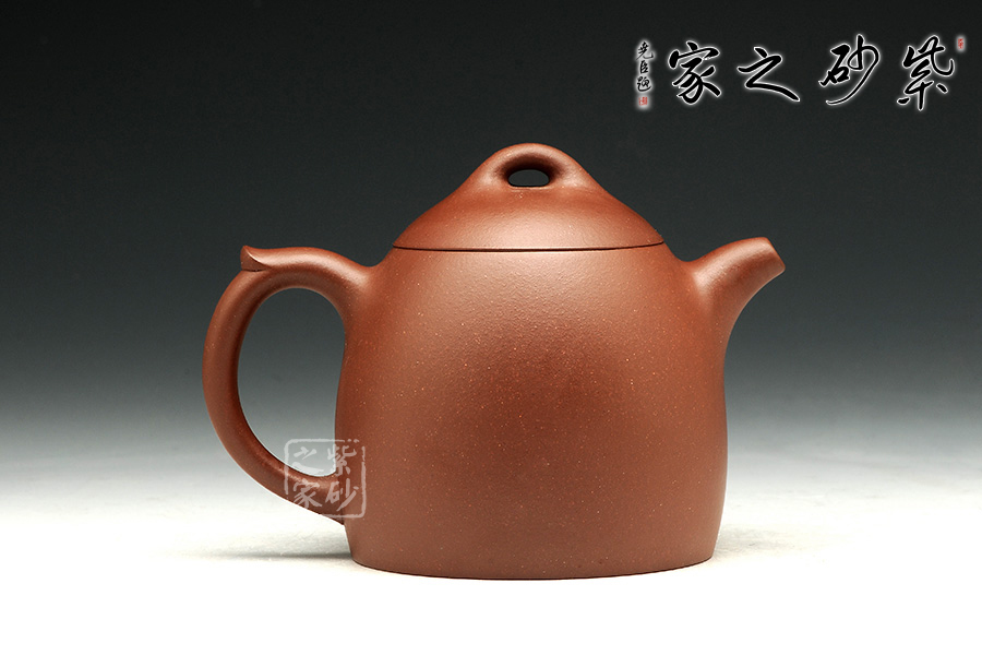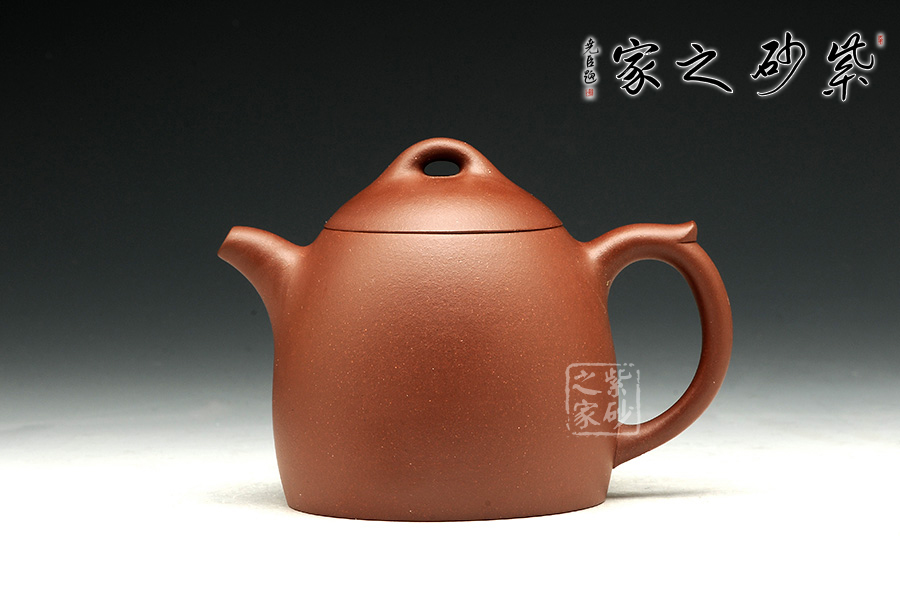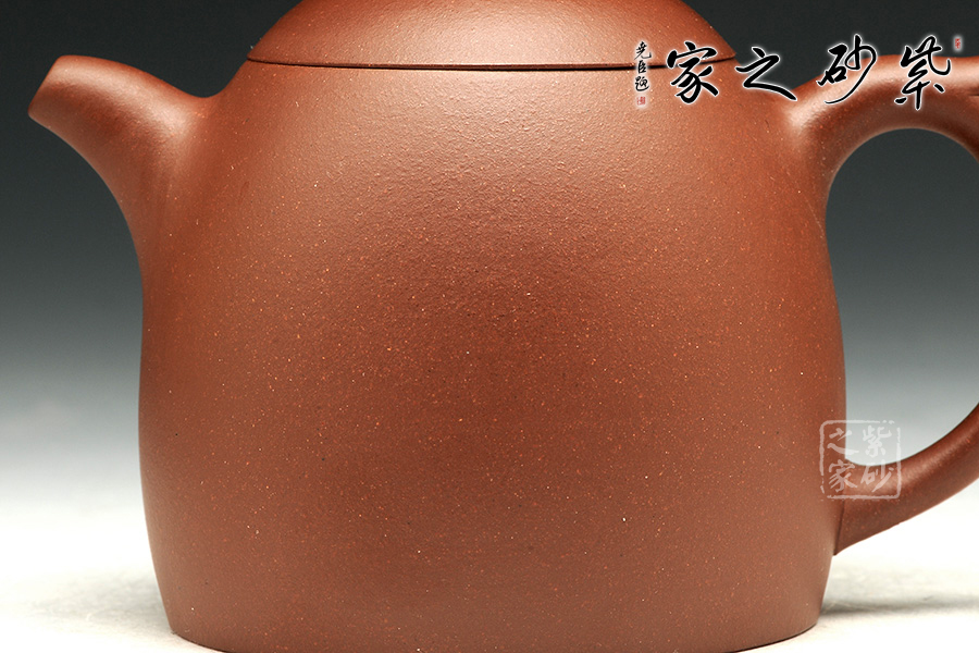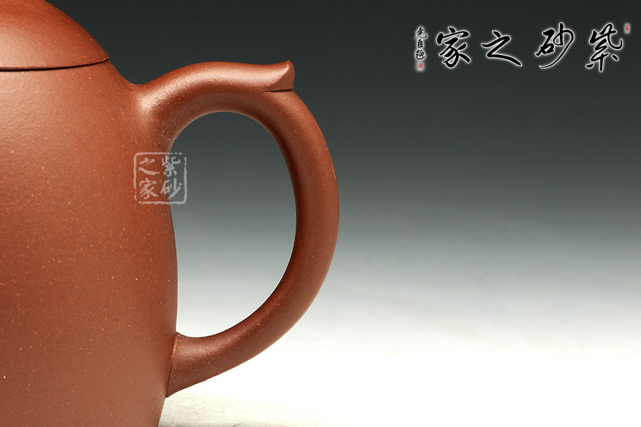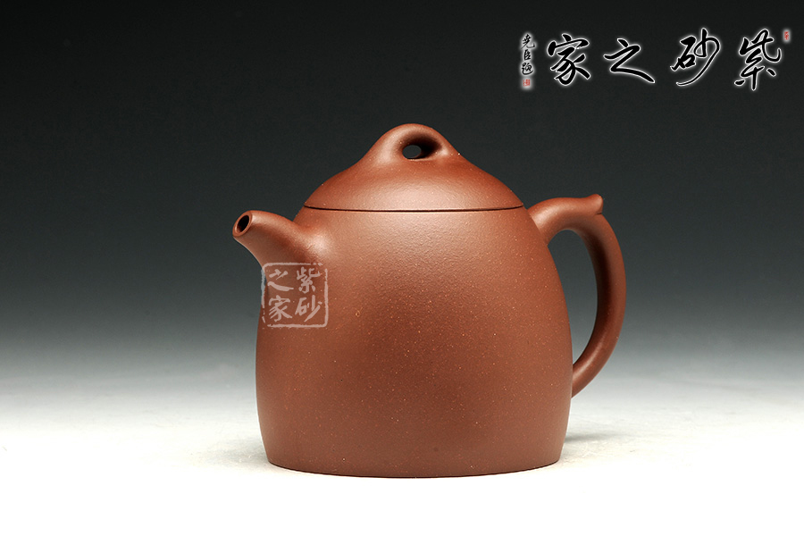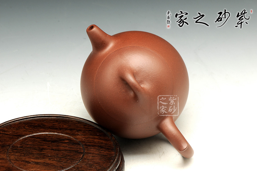 秦權(quán)壺是傳統(tǒng)壺型之一。設(shè)計(jì)者將中國(guó)古代“秦權(quán)”與紫砂壺巧妙地結(jié)合在一起,整體造型設(shè)計(jì)成為秦代貨幣秤砣的樣式。不僅大氣十足,更見張力。此壺線條粗獷,通體流暢,銜接緊密。無(wú)論是胥出的一彎嘴還是飛把,均古韻十足,橋形鈕就如秤砣上線孔,卵圓形極其逼真。