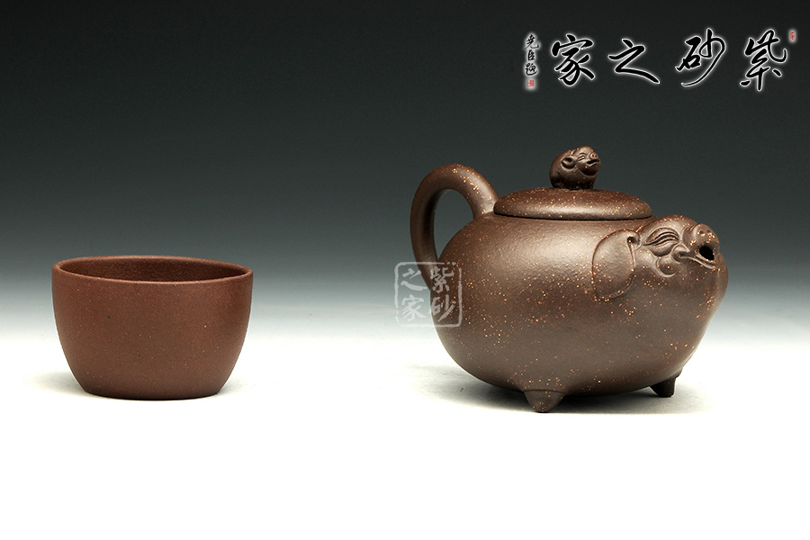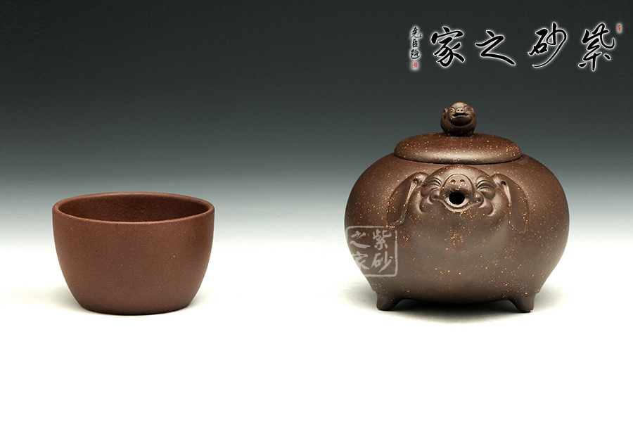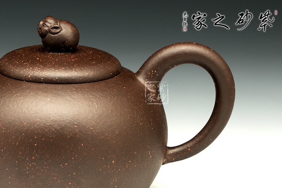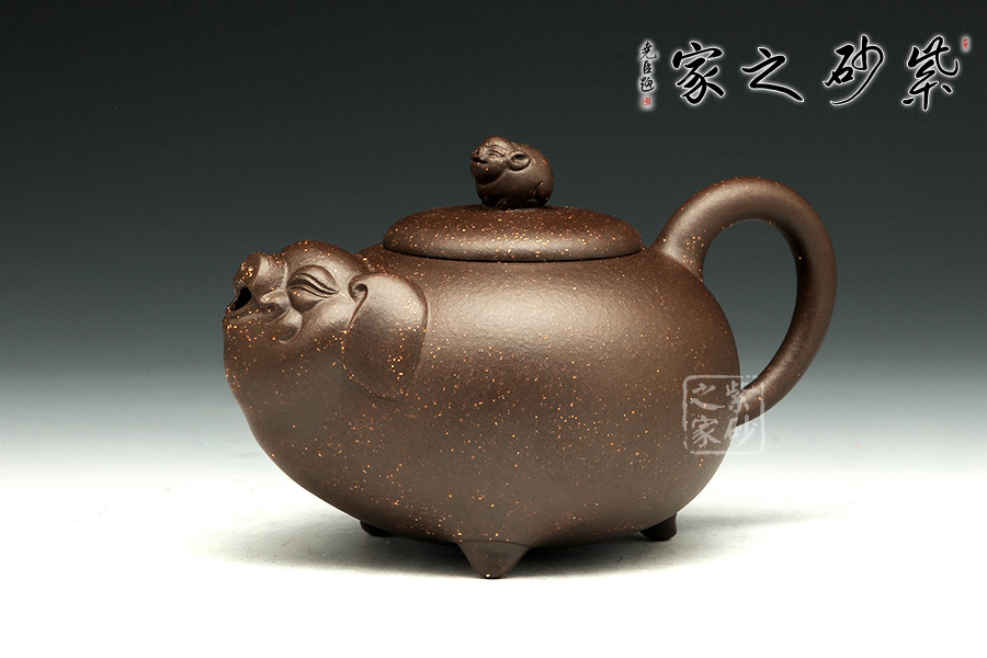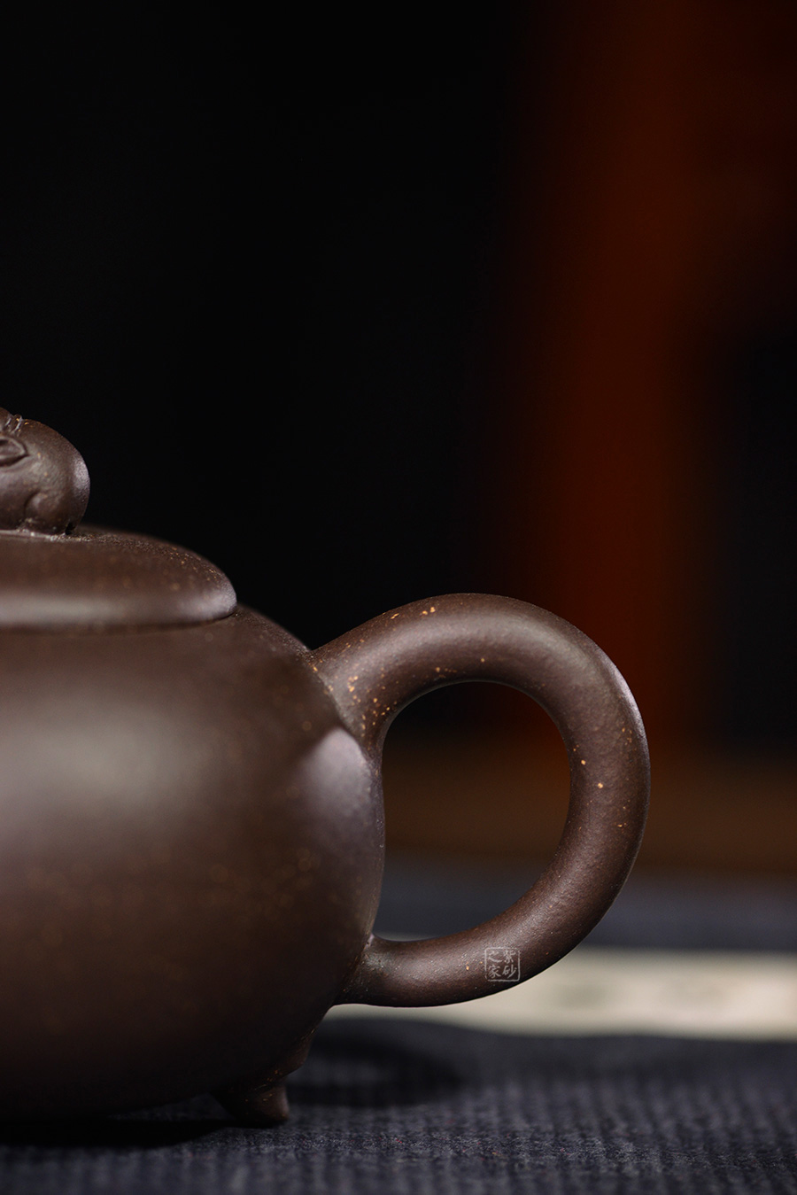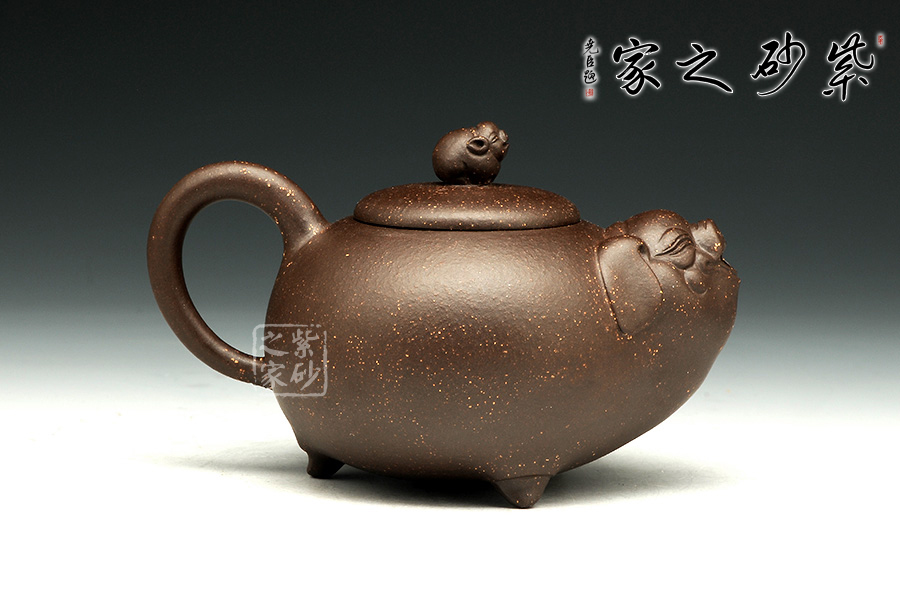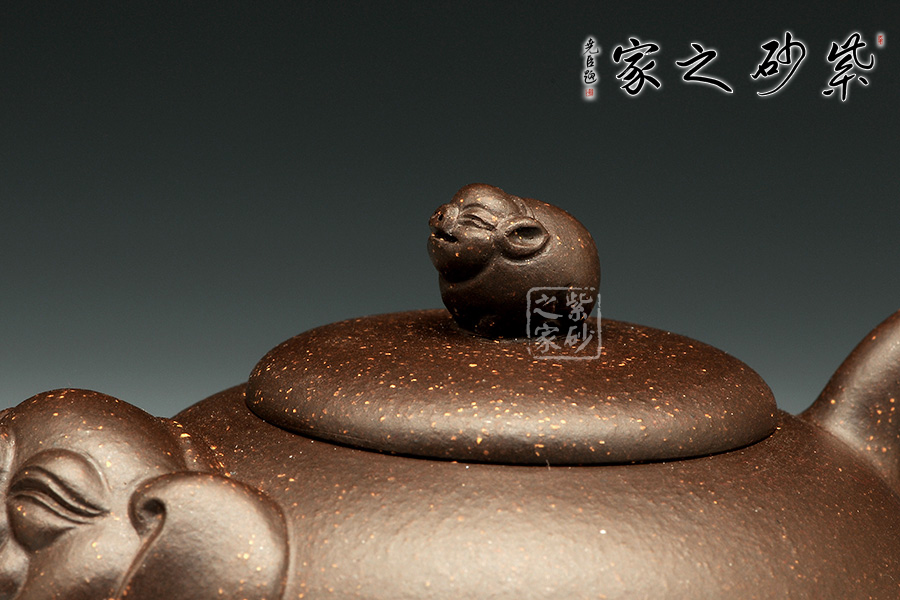 老師這款壺造型別致,鐵砂泥潤(rùn)澤飽滿,砂質(zhì)感盡顯,氣韻豐盈。以豬首做壺流,肥頭大耳,憨態(tài)可掬;豬尾巴塑成圓柄壺把,端握適手,實(shí)用性佳。壺體內(nèi)斂沉穩(wěn),壓蓋上一只胖乎乎圓潤(rùn)可愛(ài)的小豬為壺鈕,實(shí)在精致!簡(jiǎn)潔無(wú)贅飾的壺體更顯紫砂陶素面素心的璞玉本質(zhì),值得推薦!