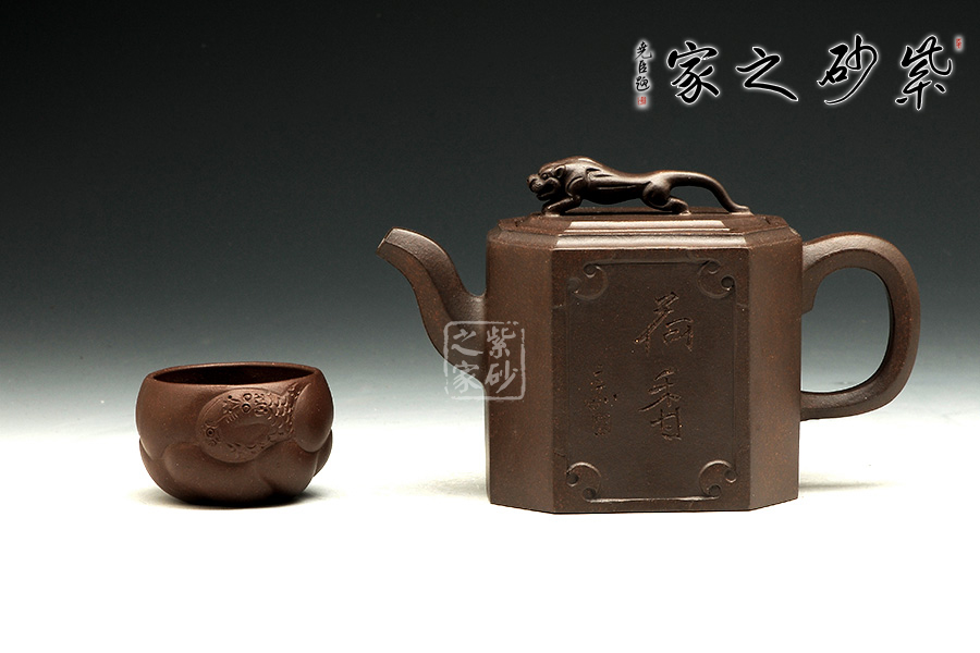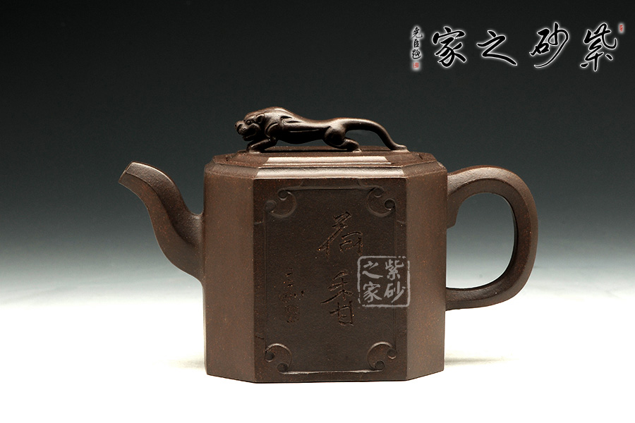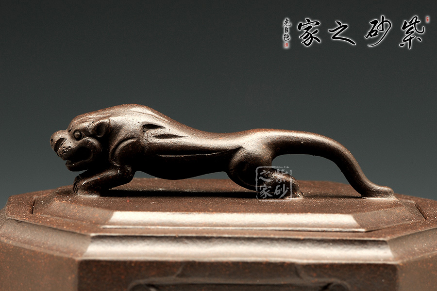此壺名為獅尊,顯得沉穩(wěn)霸氣,拿捏穩(wěn)重。該壺是典型的方壺,高挺大氣,氣韻軒昂,挺括有力,方正有型。壺嘴和壺把的設(shè)計與壺身相應(yīng)成趣,呼應(yīng)主題。整個壺最大的亮點在于壺鈕的精美設(shè)計和壺身精細(xì)雕刻。壺鈕為一只伏身向前的雄獅,生動富有趣味,置于整壺之上,傲視群雄。同時,壺身正反兩面分別展示刻繪字畫,如同古時的屏風(fēng),極具美感,荷蓮逸趣,精品之作乃饋贈首選!