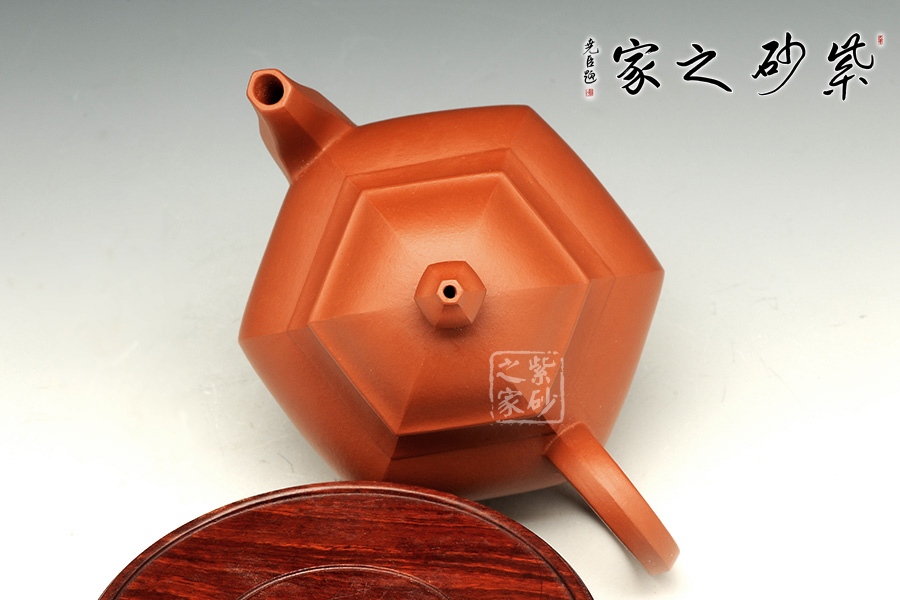 紫砂壺中方器是基本款式之一。此壺運(yùn)用長(zhǎng)短直線組成,工整有力,極具陽(yáng)剛之氣;壺身面與面之間線條流暢,棱角畢現(xiàn)。此款壺型依據(jù)幾何造型,器型表面簡(jiǎn)單,做工精細(xì),需要有深厚的制作技術(shù)才能將方器的精髓把握住,此壺便是將方器的精髓之處把握得恰如其分。