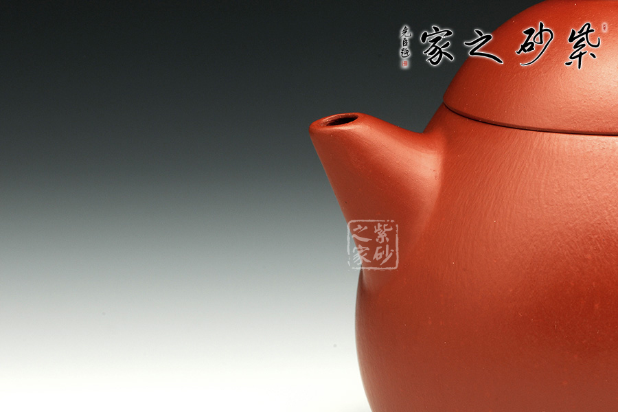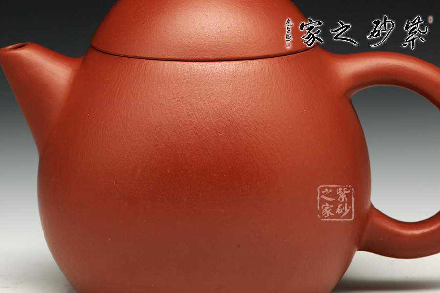 特點:質(zhì)感綿密、緊實細(xì)緻,持之扎實沉重、紅潤豔麗,泥中極品,無以倫比;泥胚含少許原礦顆粒,沖淋熱水后色變極大,呈紅中帶紫,養(yǎng)壺易現(xiàn)“包漿”之美。