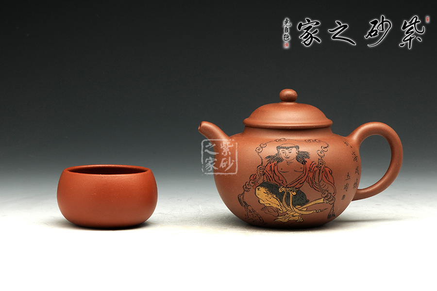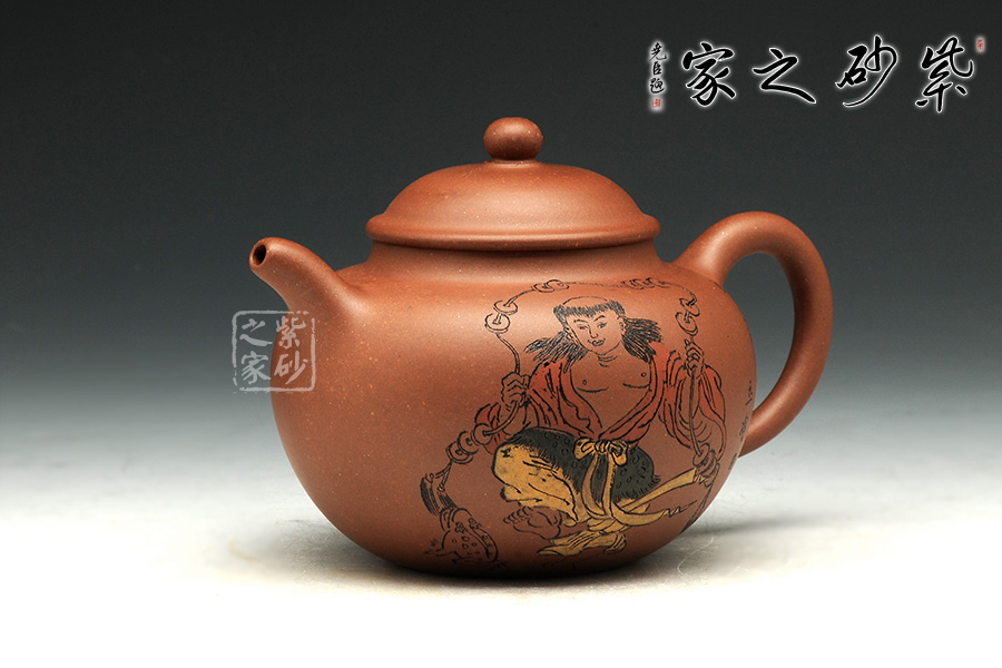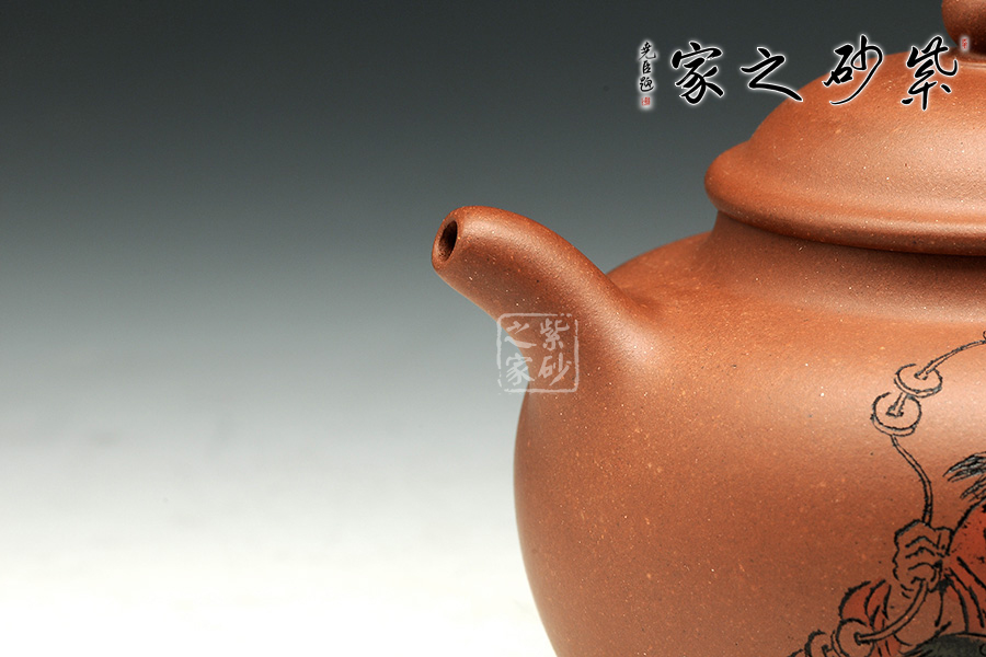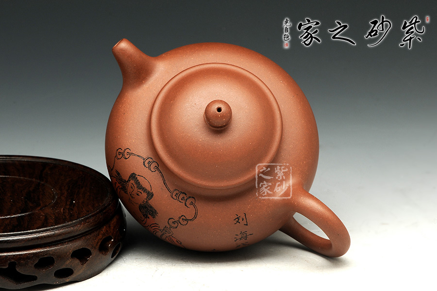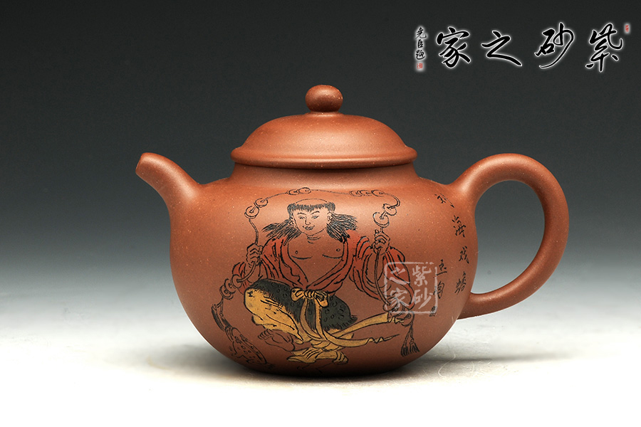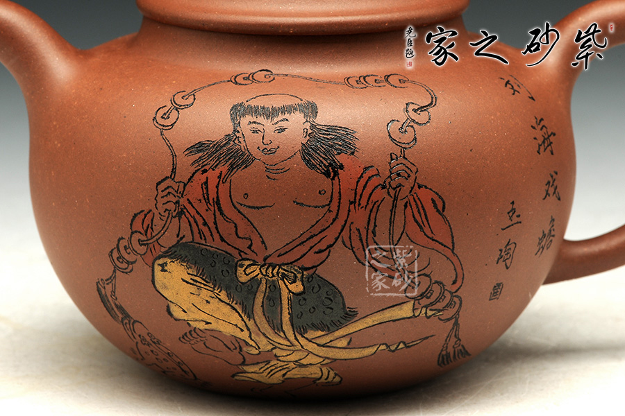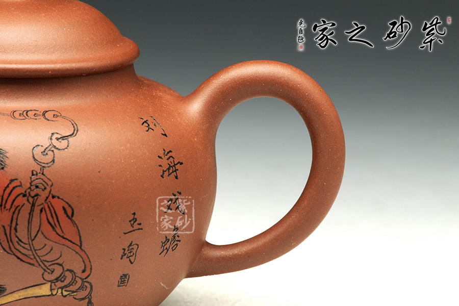 通體裝飾: 裝飾: 人物 裝飾者:莊青 裝飾內(nèi)容: 刻繪劉海戲蟾,生動傳神