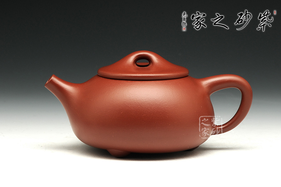 經(jīng)典的石瓢造型,此壺下大上小呈三角形的石瓢形,周身皆以圓弧線條構(gòu)成,嘴、把、的處處銜接自然流暢,線條利落明確,起承轉(zhuǎn)合交待清楚,下以三圓足支起全身,使壺顯得挺括有神,沉靜而深意雋永。色澤高雅,泥質(zhì)清新,暗接直流嘴上翹角度很高出水十分有勁道,三角壺把轉(zhuǎn)折有力,端握舒適,無(wú)處不吐露出渾厚的氣息,更是一種大氣風(fēng)范。