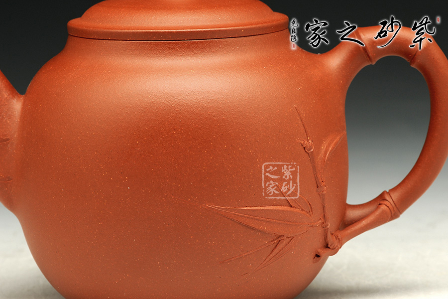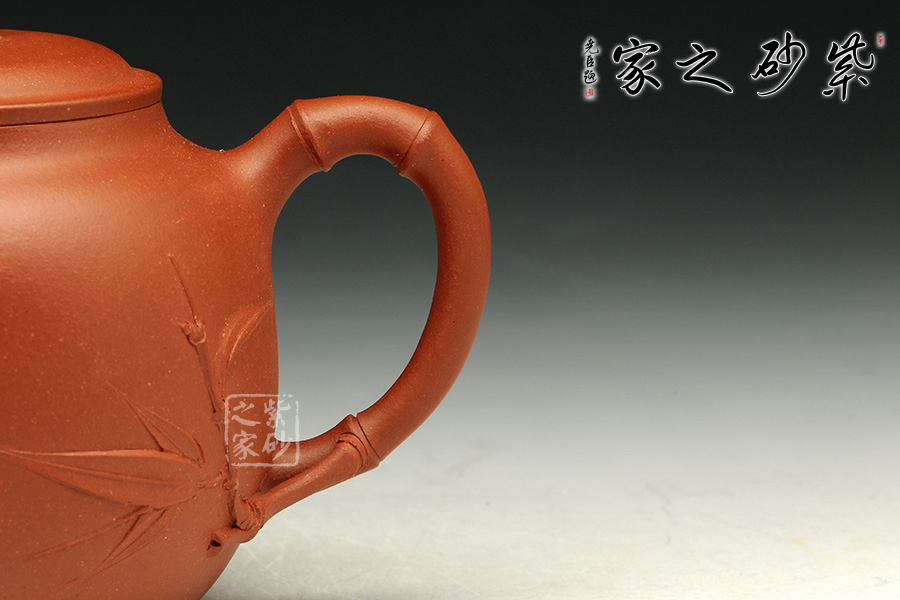 此款作品,以竹為創(chuàng)作主題,寓意竹之堅(jiān)強(qiáng)不屈的高尚品質(zhì)。壺嘴、壺把、壺鈕,皆以竹枝為形,刻畫(huà)的十分到位,栩栩如生;壺身飽滿圓潤(rùn),線條流暢自如,整器高雅,彰顯出文人氣質(zhì),富有韻味;此款作品,采用原礦紅泥手制,壺身色澤鮮艷,質(zhì)感特殊。此款作品,楊夢(mèng)婷老師幾易其稿,方成此壺,制作不易;250CC適合三人品茗小聚,入手升值!