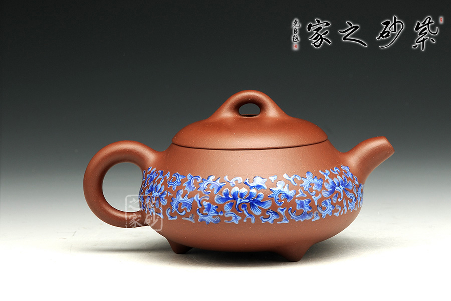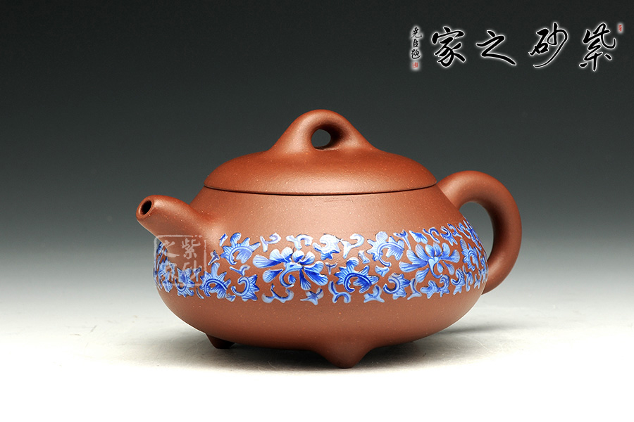 這款漢棠石瓢的壺身線條較為柔和,壺身略扁,壺身線條在直線程度上少許彎曲,顯得更為干脆利落,壺身呈梯形,造型渾厚樸拙,智欲其剛,行欲其方,允克用藏的精髓,蘊(yùn)精氣神韻于一身,可視為壺之智者。截蓋纖秀輕盈,暗接橋形鈕古雅精致,彎流嘴胥出利落自然,出水迅猛大氣,耳把回歸經(jīng)典石瓢的氣勢(shì),三只乳丁足抬高壺身,更顯威嚴(yán)。此壺通體流暢,曲線優(yōu)美,古樸大方,用泥溫潤,以特別的青花琺瑯彩裝飾,格調(diào)高雅,推薦!
