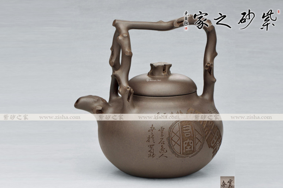 吳云根一生勤勞純樸,光明磊落,公私分明。直到去世,未給子女們私下留存一件他個人的作品。他的紫砂作品,構(gòu)思奇妙,享有“出神入化”之美譽。制作的《提把弧菱壺》、《雙色竹段壺》、《大型竹提》、《傳爐壺》、《線云壺》、《合菱壺》等,曾多次選定參加國內(nèi)外陶藝大展,聲譽遠(yuǎn)播。創(chuàng)作設(shè)計的竹花盆、大長方水底盆及新石桃、菱角茶具、雙色柿子,還有《魚罩壺》、《春寧壺》等在傳統(tǒng)手法上頗具創(chuàng)意。他的作品喜用雙色泥表達主體,較多的用竹為題。竹節(jié)為壺身挺拔剛勁,壺咀、壺把、鈕、綴以小竹枝攀于壺體,由曲枝構(gòu)成,輔以幾片小竹葉,舒展有姿似風(fēng)中飄動,疏密有致;兩種泥色處理,相互呼應(yīng),色澤和諧得體。在制作處理手法上以竹節(jié)為主體的合理結(jié)構(gòu),以葉、莖、枝、芽為襯托,充分表現(xiàn)翠竹的神韻。又如《柿子壺》是常見的造型,他采用多種手法制作,有宜于裝飾銘文,且光潤的四瓣莖紋柿子壺,也有重在表現(xiàn)柿子生態(tài)的翻蓋柿子壺,光潤內(nèi)蘊,楚楚動人。《傳爐壺》敦厚樸實,《弧菱壺》方中富圓,圓中見方,他的作品渾然天成,毫無雕琢之氣。
