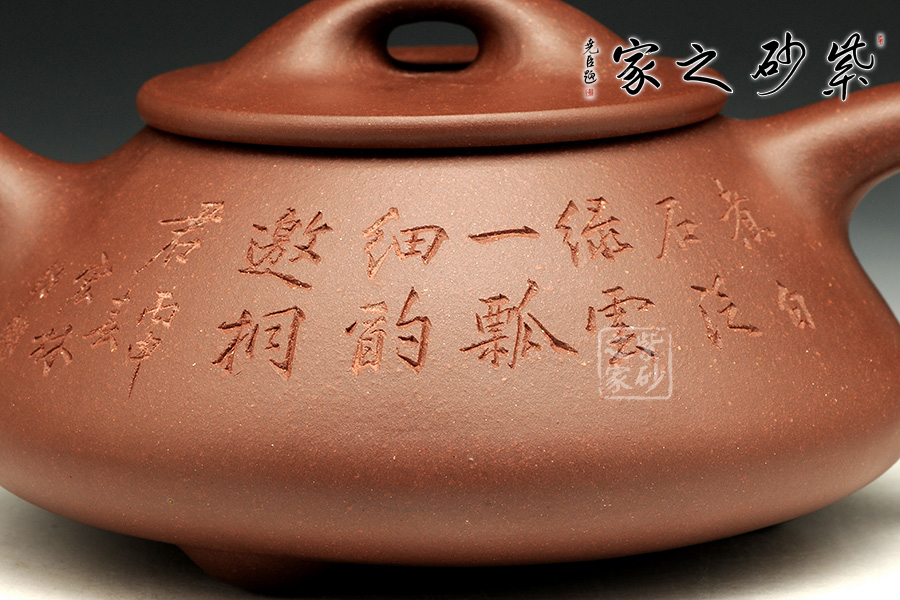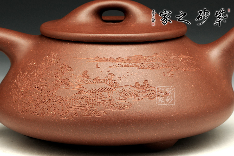 石瓢是紫砂經(jīng)典器型之一,在吳建平老師的演繹下煥發(fā)別樣風(fēng)姿。該壺以原礦底槽青為胎,色澤古雅,手感極佳;壺身比例和諧,骨肉亭勻,線條流暢不拖沓,將石瓢的線條美展現(xiàn)的淋漓盡致;壺身正面刻“煮白石,泛綠云, 一瓢細酌邀桐君”;反面刻山居圖,刻繪細膩,自成風(fēng)格;整器端莊大方,料好精工,兼具欣賞與實用價值,值得推薦!
